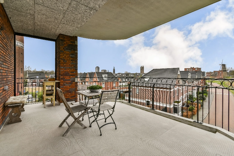 De living is een mooie ruime kamer met een luxe greeploze Tieleman keuken in witte opstelling compleet gemaakt met een composiet aanrechtblad en een mooie koffiecorner. De woonkamer heeft een mooi zijraam met een frans balkon. Hier kan je in de ochtend al genieten van de eerste zonnestralen. Tevens vindt u in de woonkamer twee openslaande deuren naar het ruime terras. Deze is op het westen gelegen en hier kunt u vanaf het middaguur tot de avond genieten van het zonnetje en heeft u een mooi uitzicht over de dijk en de molen.