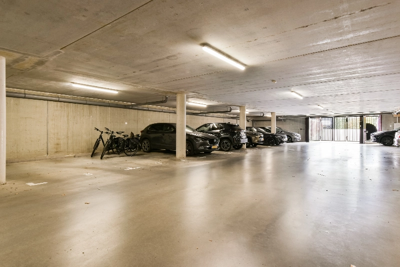 In de onderbouw van het complex heeft het appartement een eigen parkeerplaats en een aparte berging. De berging heeft een afmeting van ca. 2.50 x 2.15m.