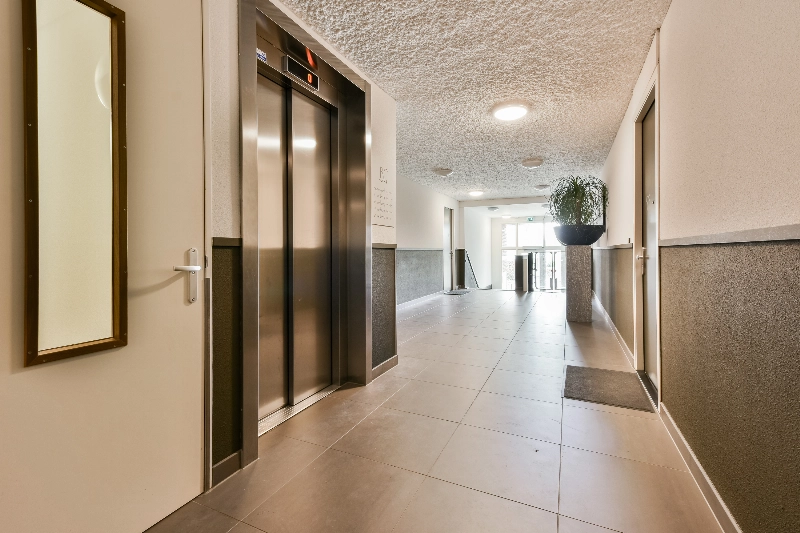 Afgesloten centrale entree, brievenbussen, lift, trappenhuis en toegang tot de bergingen en parkeerplaats.
