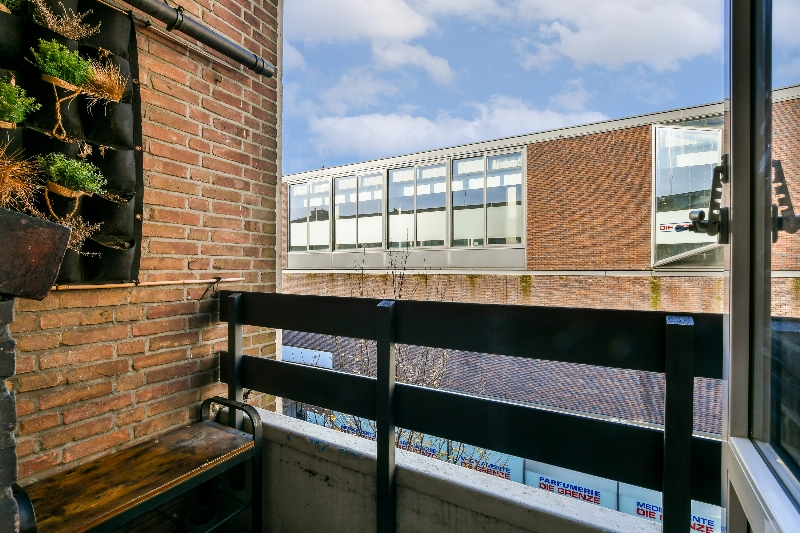 Aan de voorzijde ligt de slaapkamer. Deze is ruim en heeft een deur naar het balkon aan de voorzijde.