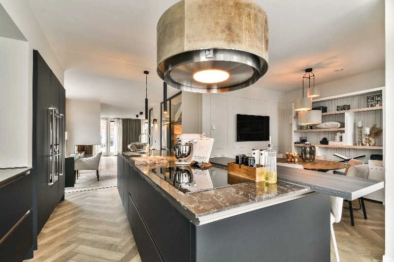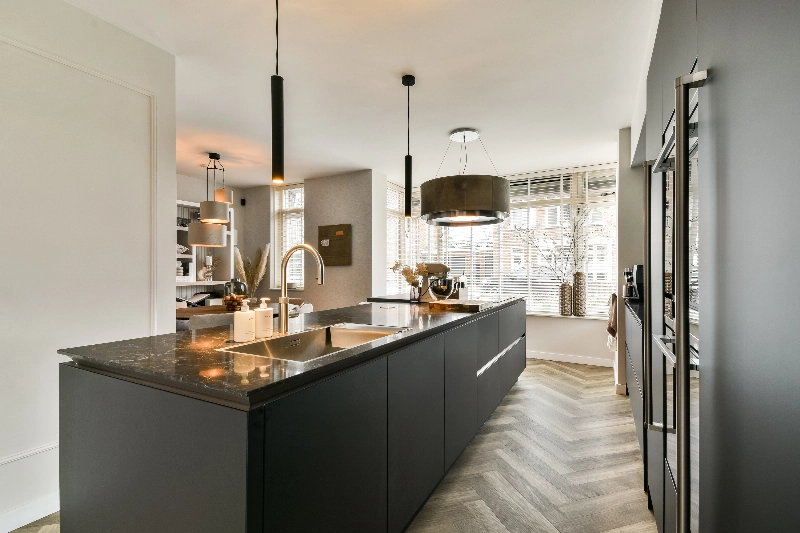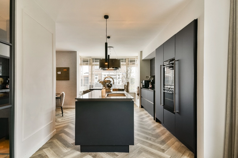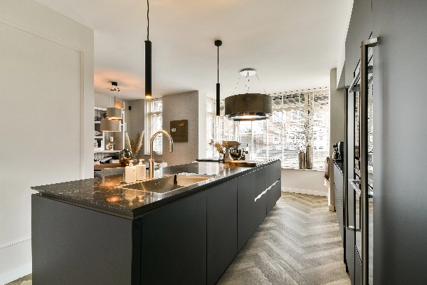 De prachtige woonkeuken (Siematic) ligt aan de voorzijde en is van alle gemakken voorzien. Denk hierbij aan een hoge opstelling voorzien van koffiebar, koelkast, vriezer, oven en combi-oven. Het kookeiland is voorzien van een marmerlook keramiek aanrechtblad met elektrapunten, brede spoelbak, vaatwasser, inductiekookplaat en een wavedesign afzuiglamp met plasmafilter.