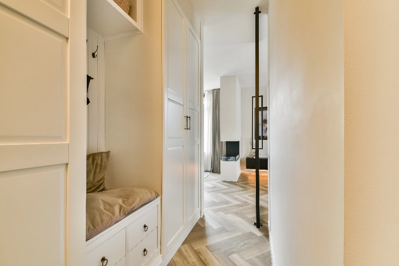 En dan de verrassing… Via een recente verbouwing is een aparte gang gecreëerd met garderobe, kasten en doorgang naar de garage/bijkeuken. Deze ruimte is volledig geïsoleerd, voorzien van vloerverwarming- en koeling, aansluiting voor warm- en koud water wasmachine en droger en heeft een loopdeur naar de tuin. De voormalige overheaddeur is vervangen door een stijlvol houten kozijn met brede dubbele openslaande deuren.