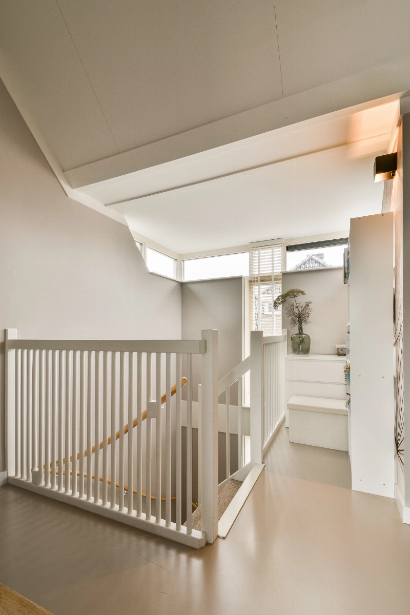 Deze verdieping is afgewerkt met een gietvloer en een ca. 6 meter breed dakkapel wat voor veel extra ruimte zorgt. Zo kon hier dan ook een 2e badkamer en nog eens twee slaapkamers gecreëerd worden!