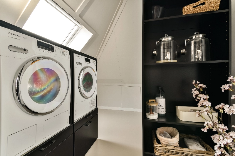 Er is een aparte was-stookruimte met een kunststof dakraam, aansluiting voor de wasmachine- en droger, opstelplaats voor de WKO en een omvormer van de zonnepanelen. Er zijn 6 stuks zonnepanelen aanwezig en deze kan koper zelf naar wens op het dak plaatsen.
