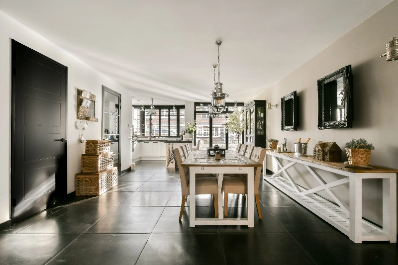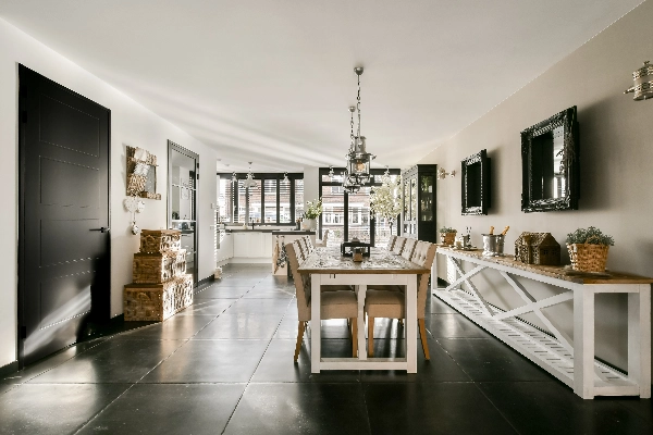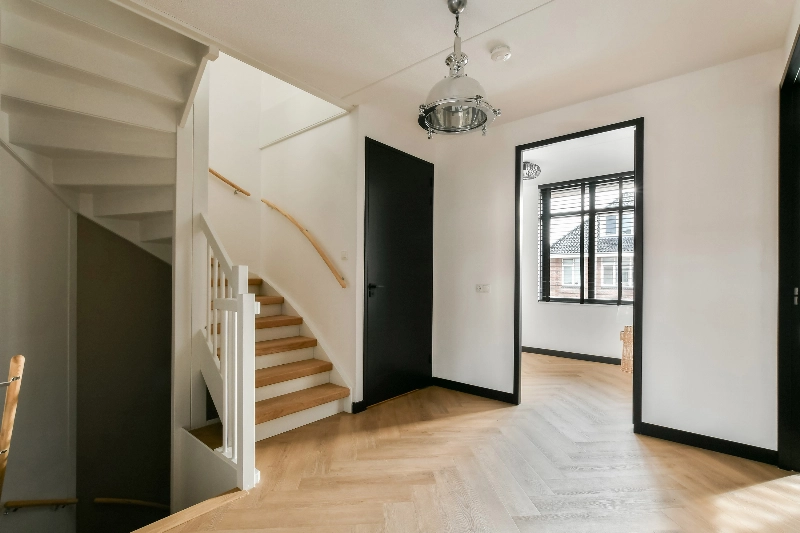 Het geheel is stijlvol en met aandacht afgewerkt; Zo zijn alle wanden voorzien van glasvliesbehang en de plafonds zijn glad gestuct. Alle deuren zijn zwart afgewerkt en er zijn hoge plinten aangebracht. De begane grond is voorzien van grote Belgisch hardsteen plavuizen en de 1e en zolderverdieping is afgewerkt met een mooie houtlook PVC vloer in visgraatmotief gelegd.