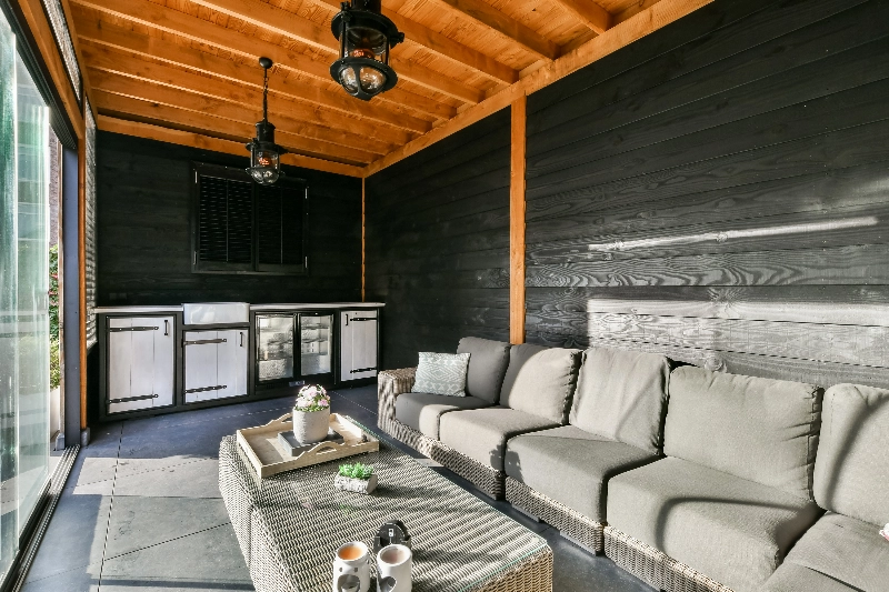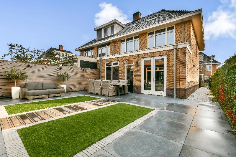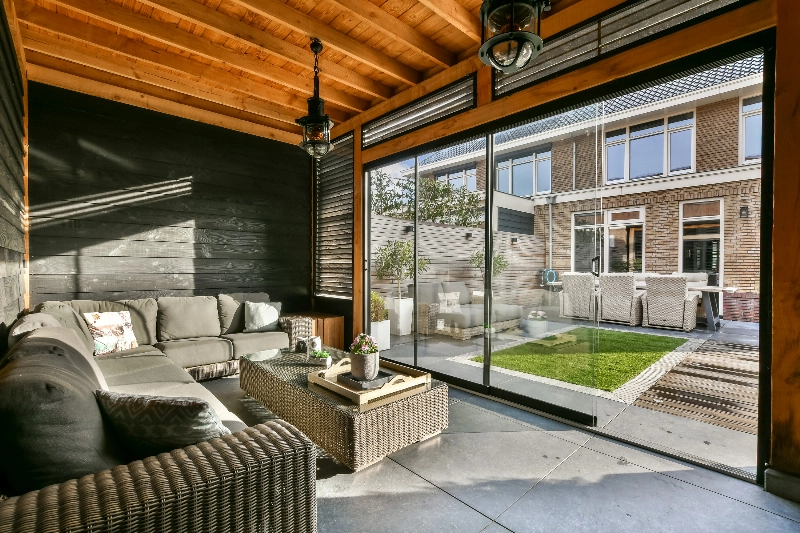 Maar dé verrassing van deze woning bevindt zich aan de achterzijde. De mooi aangelegde achter- en zijtuin voelt als een verlengstuk van het wooncomfort. Strak betegeld, afgewisseld met gras en houten elementen, biedt deze tuin meerdere zitplekken. Of je nu wilt loungen, uitgebreid dineren of gewoon ontspannen in de zon: hier kan het allemaal. Er is hier een heerlijk tuinhuis geplaatst met pantry, elektra, betegeling en de glazen schermen zorgen ervoor dat je hier het hele jaar door gebruik van kunt maken. De houten berging en moderne erfafscheiding geven de tuin een rustige, verzorgde uitstraling en de zijtuin is voorzien van een poort.