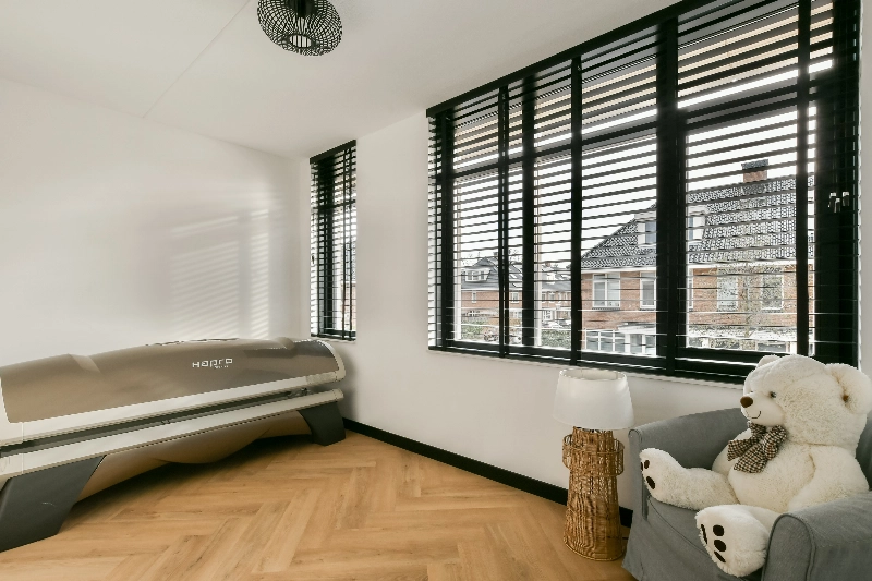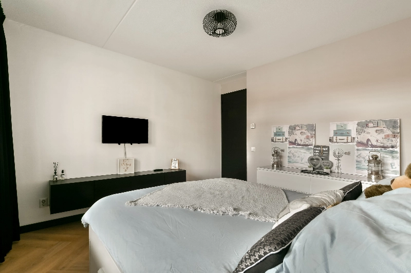 Wow… ook hier weer die ruimte! Er is een zeer ruime overloop met een 2e toilet die hetzelfde is afgewerkt als het toilet op de begane grond. Aan de voorzijde vind je 2 slaapkamers en aan de achterzijde zijn ook weer 2 slaapkamers. Allen zijn goed van afmeting en voorzien van houten jaloezieën en die mooie PVC visgraatvloer . Of je nu de ruimte nodig hebt voor gezin of werk, het kan hier allemaal.