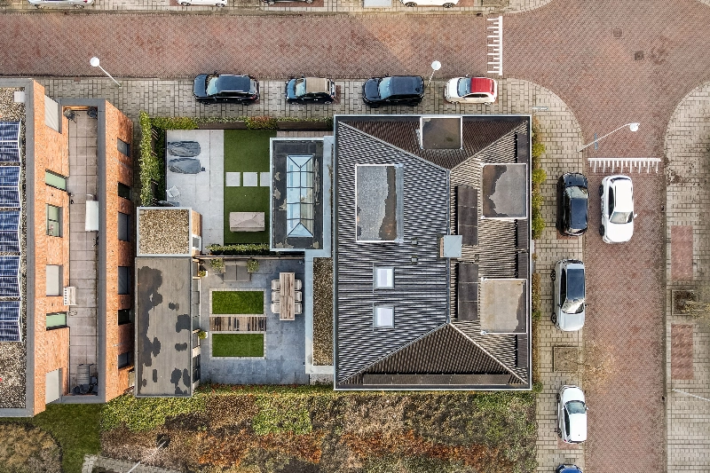 Uiteraard is het gehele huis geïsoleerd, uitgevoerd met triple-glas, gasloos en geheel voorzien van vloerverwarming- en koeling door middel van WKO. Op het dak liggen 12 zonnepanelen met micro-omvormers wat het totaal een Energielabel A+++ geeft.
