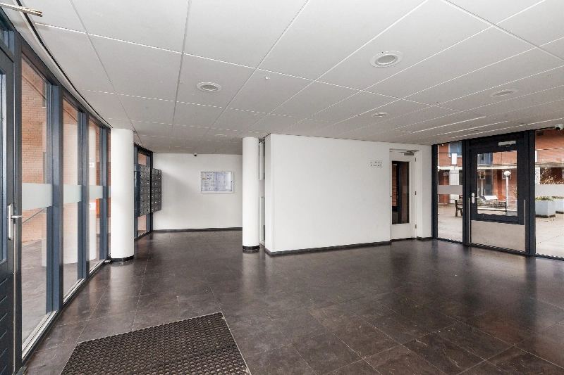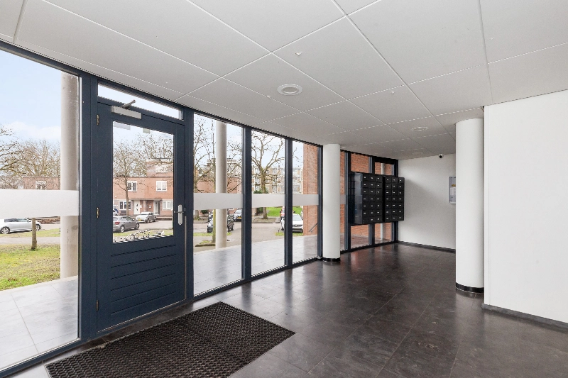 Je betreedt het complex via de gezamenlijke entree, met intercom, lift en brievenbus. De woning bevindt zich op de 2e verdieping.
