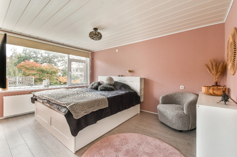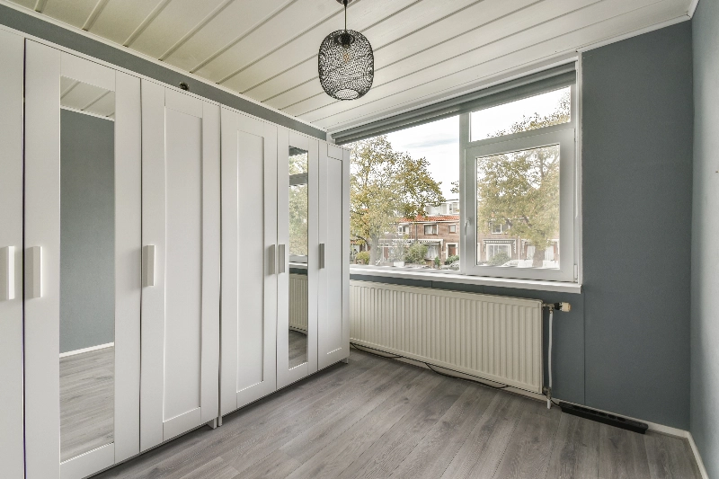 Slaapkamer II ligt aan de voorzijde en meet ca. 3.01 x 2.70 m. Vanuit deze kamer is er een directe doorloop naar de badkamer, wat zorgt voor extra comfort en gebruiksgemak. Ook deze kamer beschikt over een vaste kast.