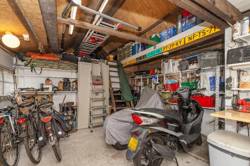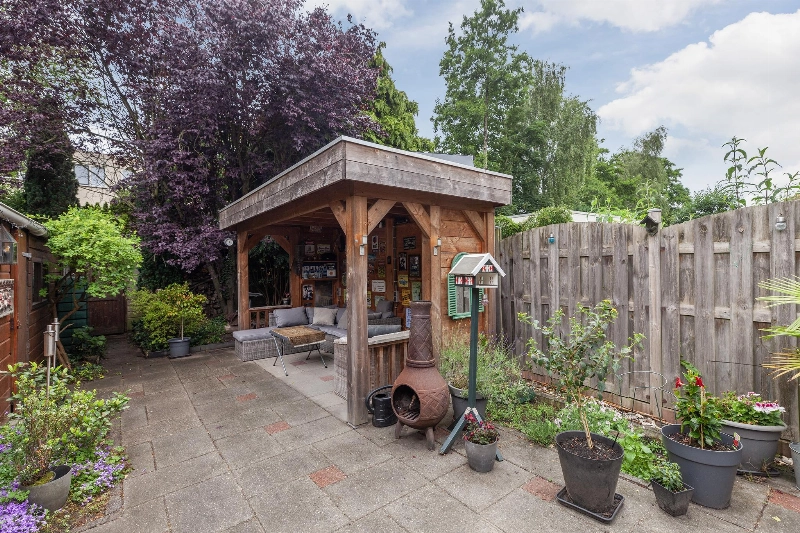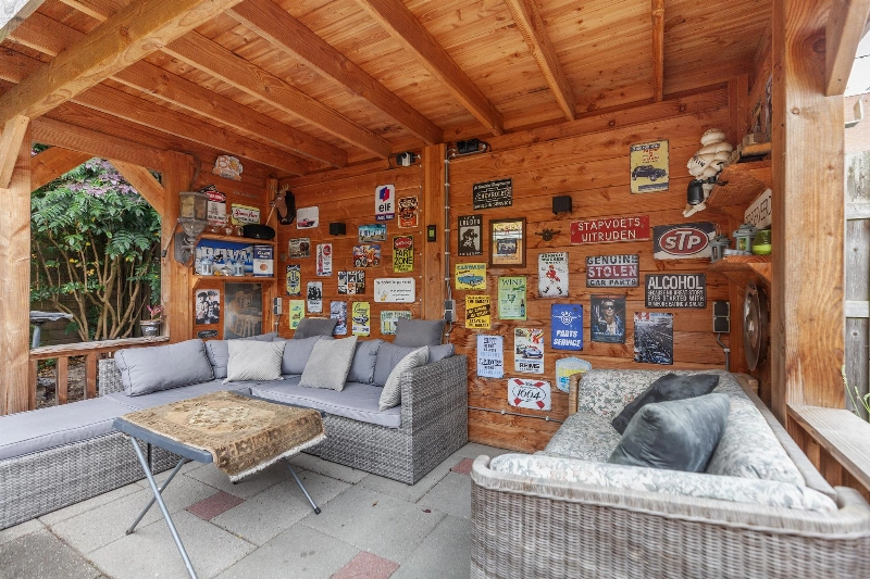 Deze diepe en brede tuin is groen aangelegd en heeft verschillende plekjes waar je in alle rust van de zon kunt genieten! Er is een grote schuur met vliering, elektra en water. Er staan 3 regentonnen in de tuin die goed zijn voor bijna 1000 liter water. De losstaande overkapping kan het hele jaar gebruikt worden! Aansluitend aan de grote berging vindt u de garage. Deze is vanaf de oprit te bereiken en is voorzien van elektra en water.