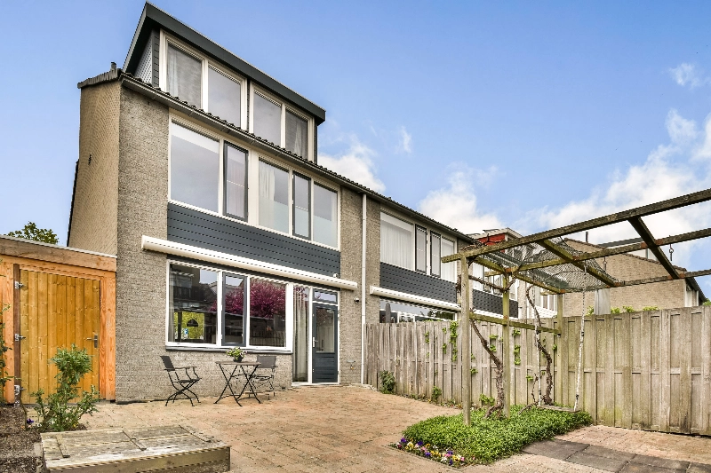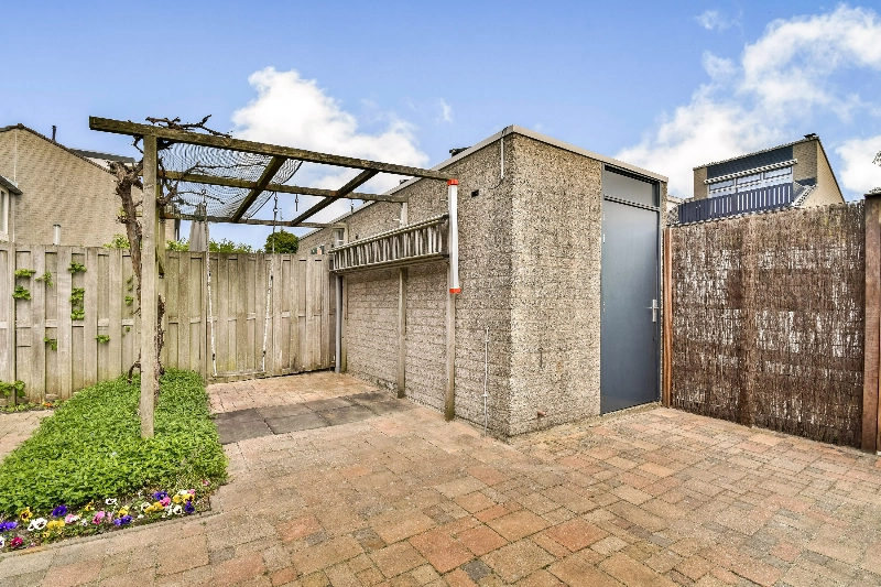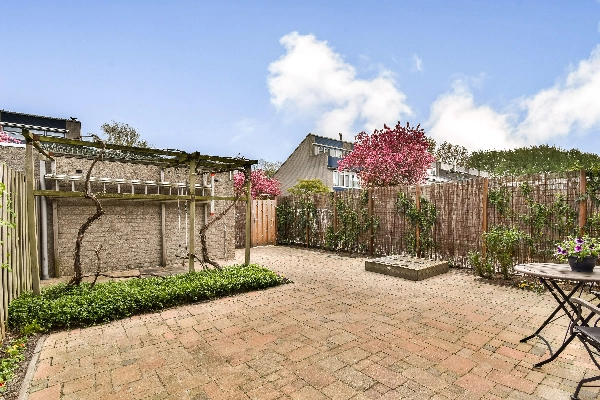 Vanuit de keuken kom je in de fraai aangelegde tuin. Deze is voorzien van een stenen berging en een achterom.