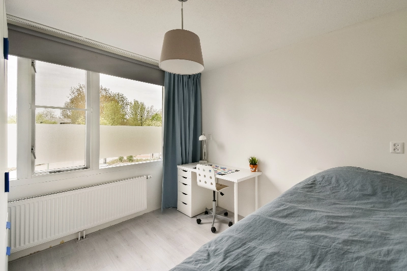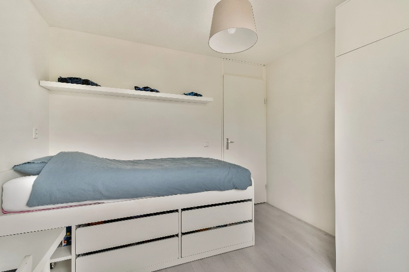 Slaapkamer I is gelegen aan de achterzijde en heeft gestucte wanden.