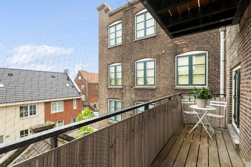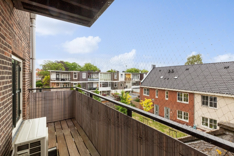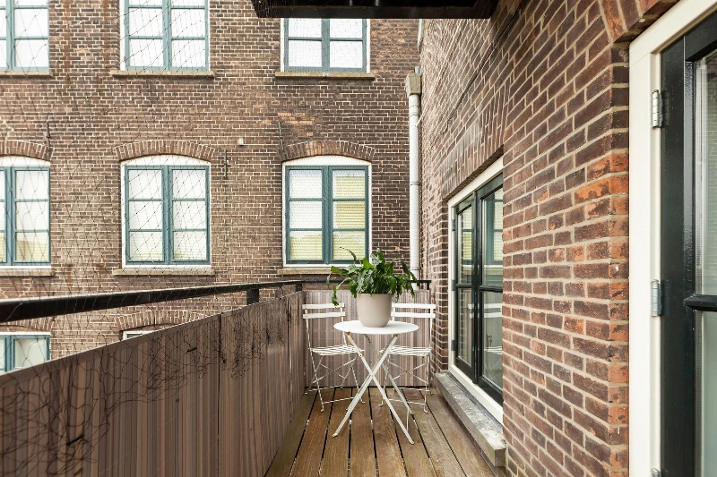 Beide kamers grenzen direct aan een balkon die via grote ramen in de slaapkamers is te bereiken. Dit balkon is afgewerkt met hardhouten vloerdelen en vanaf hier heb je een leuk zicht op de Oostwijk.