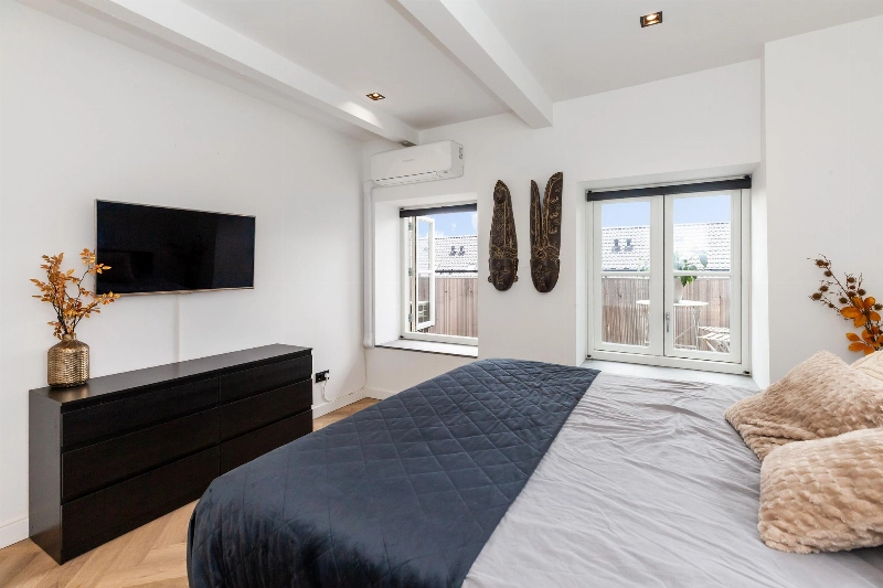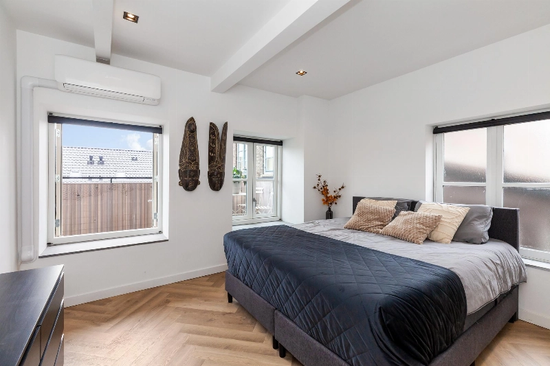 Slaapkamer i is gelegen aan de achterzijde. Deze kamer heeft veel ramen en is afgewerkt met plafondspots en een airco die verwarmd en koelt.