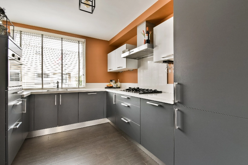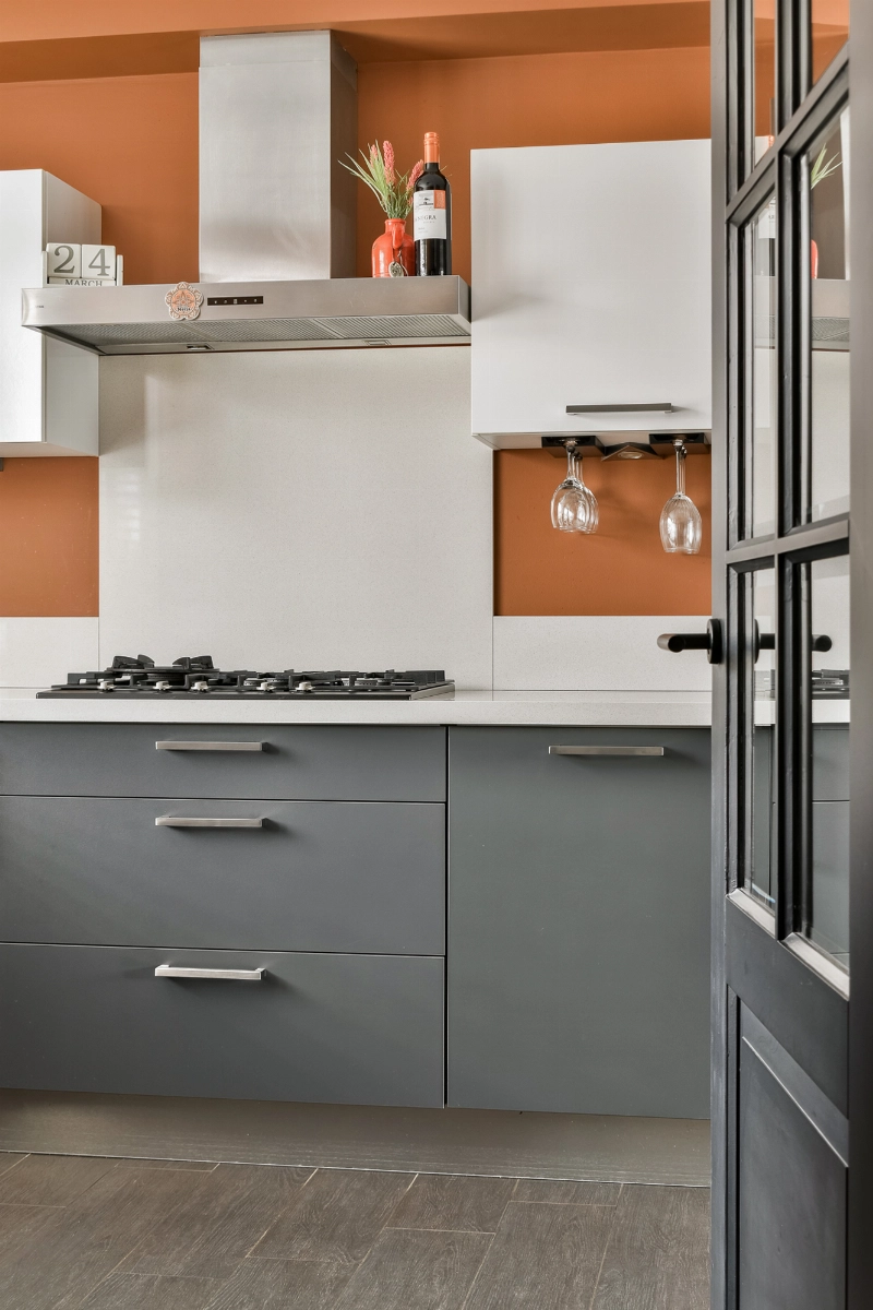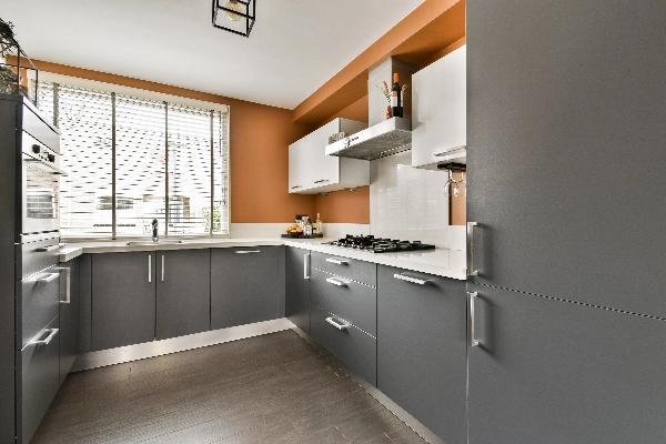 De moderne hoekkeuken ligt aan de voorzijde en vanuit hier heb je een leuk zicht op het hofje. De keuken is modern uitgevoerd met antracietkleurige frontjes, met een wit composiet werkblad en is verder van alle gemakken zoals inclusief een 4-pits gaskookplaat, oven, koelkast, vriezer, vaatwasser en een afzuigkap.