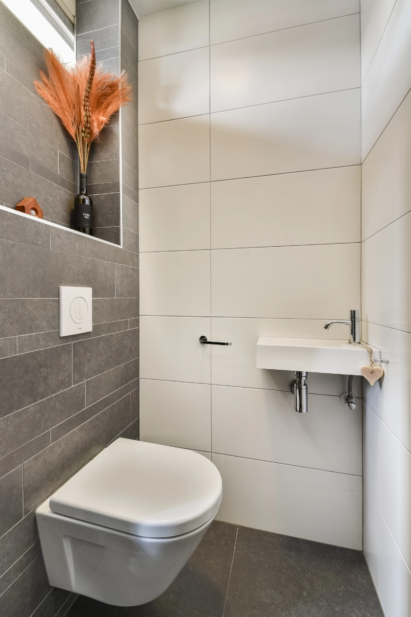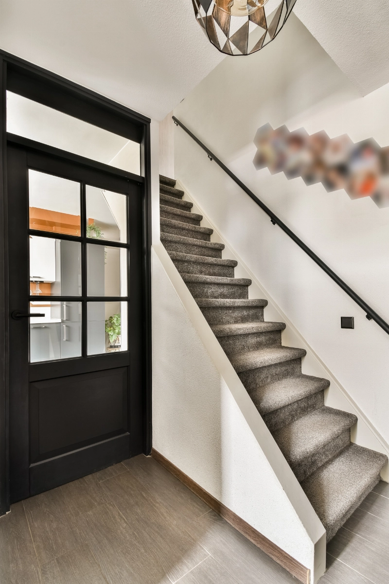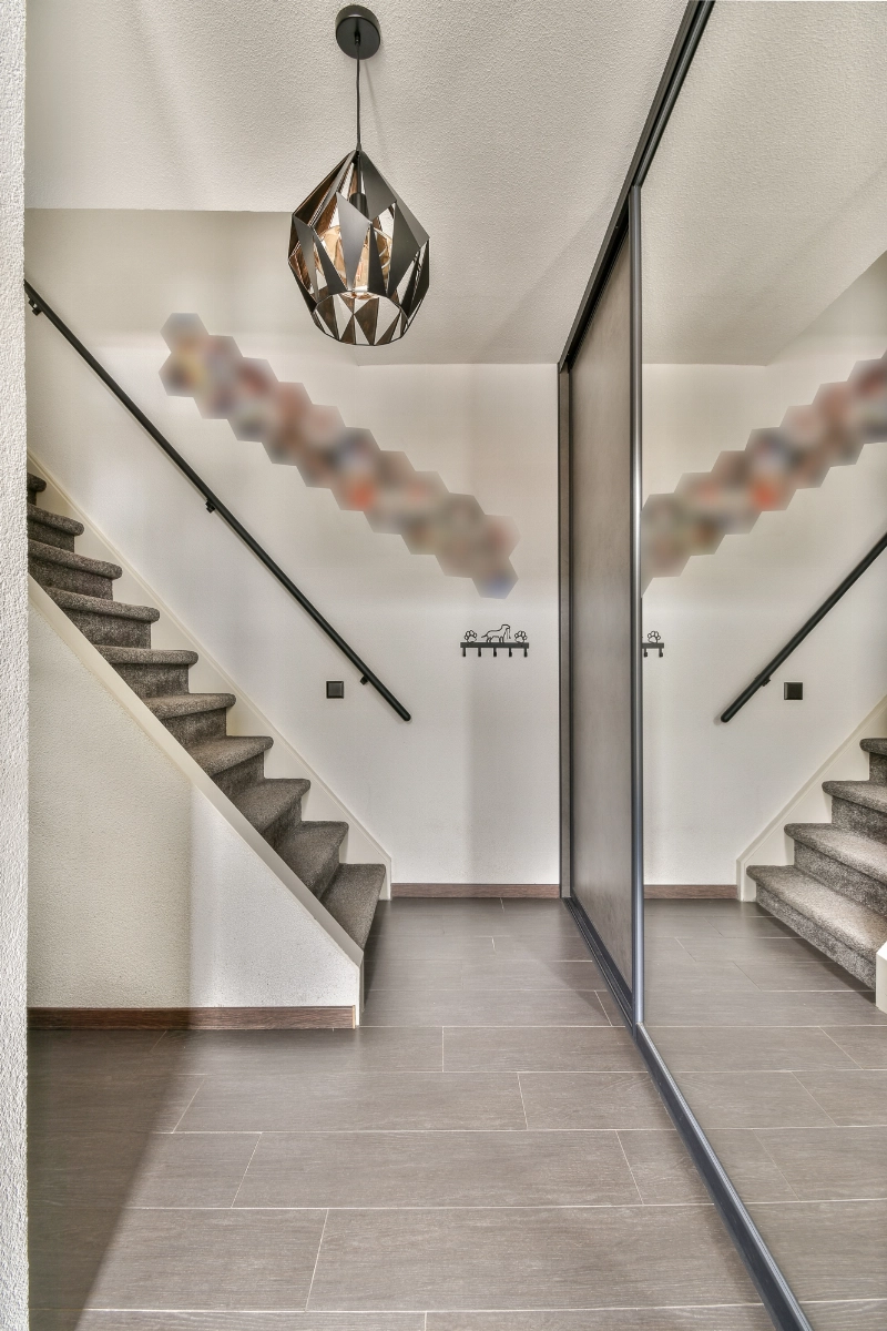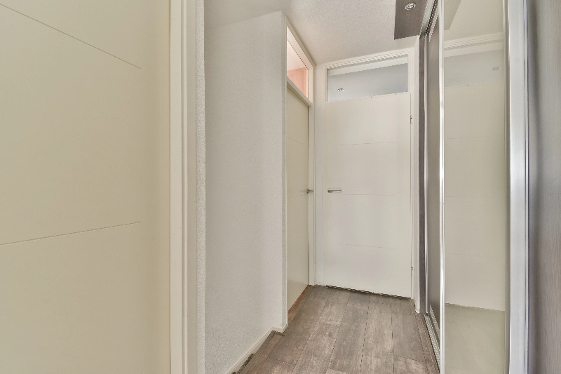 Bij binnenkomst tref je een modern afgewerkte hal met een opvallende en praktische schuifkastenwand en een modern, volledig betegeld toilet met zwevend closet en fontein. Onder de trap naar de slaapverdieping is een handige vaste kast gemaakt.