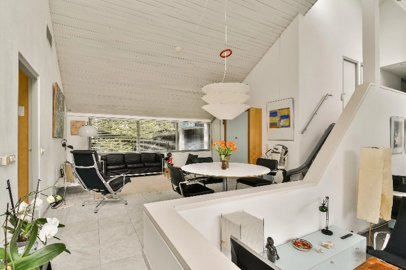 De villa kenmerkt zich door een speelse indeling met niveauverschillen op de begane grond. Grote, open vertrekken lopen geruisloos in elkaar over en bieden talloze gebruiksmogelijkheden. Heeft u een groot gezin, werkt u veel vanuit huis of heeft u een ruimte-intensieve hobby? Hier kan het allemaal. De ruime keuken vormt een fijne ontmoetingsplek voor gesprekken onder het genot van een kop thee, terwijl u uw gasten met gemak ontvangt in de royale woonkamer. Dankzij de grote raampartijen rondom geniet u van een prettige lichtinval en een warme, gastvrije sfeer.