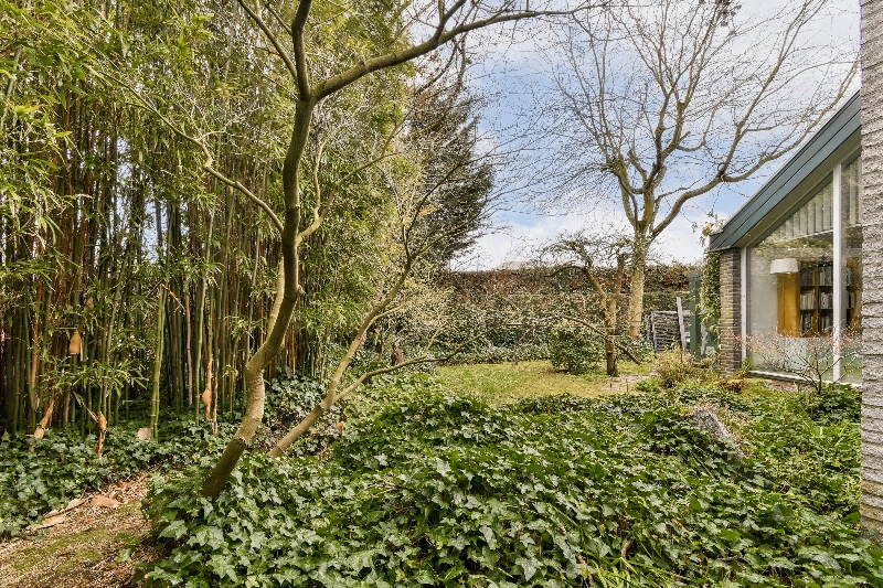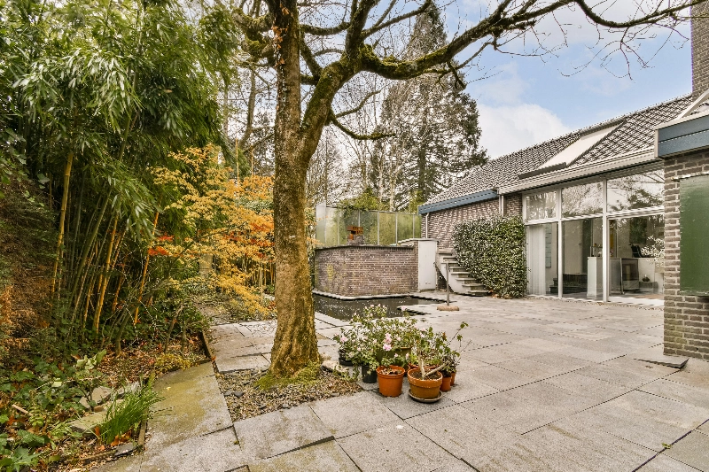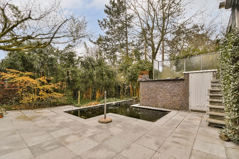 De tuin is rondom de woning aangelegd en rijkelijk voorzien van beplanting, bomen, een tuinhuis en een grote vijver met pompinstallatie. Tegelijkertijd blijft er voldoende ruimte over voor spelende kinderen. Uw auto parkeert u eenvoudig op eigen terrein en in de straat is volop openbare parkeergelegenheid aanwezig.