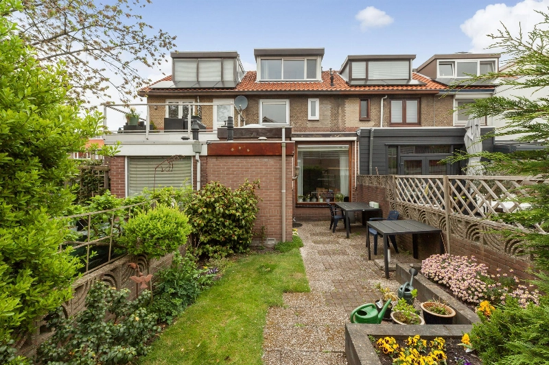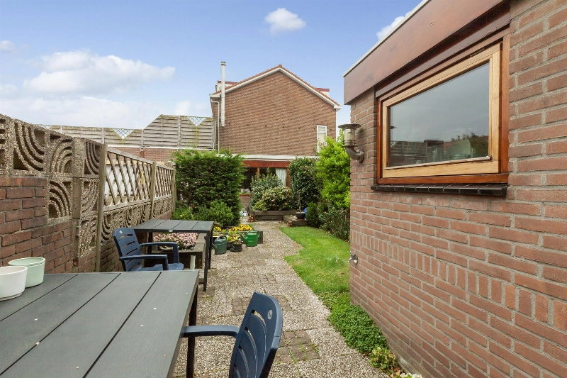 Achter de woning ligt een heerlijke diepe tuin voorzien van twee bergingen (bijkeuken en een 2e stenen berging achterin) en er is een achterom.