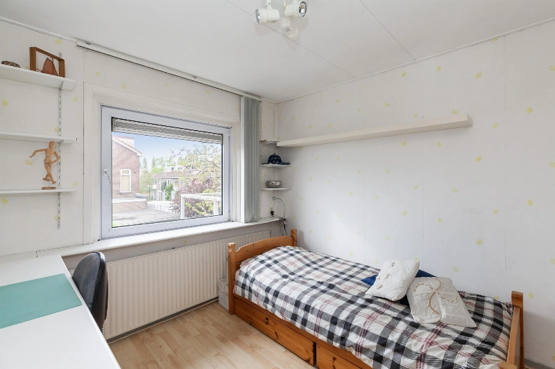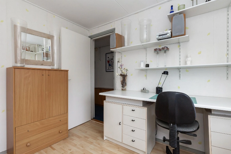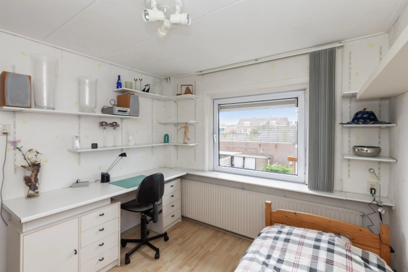 Slaapkamer II is gelegen aan de achterzijde en is eveneens voorzien van een laminaatvloer. De vaste kast geeft nog extra bergruimte.