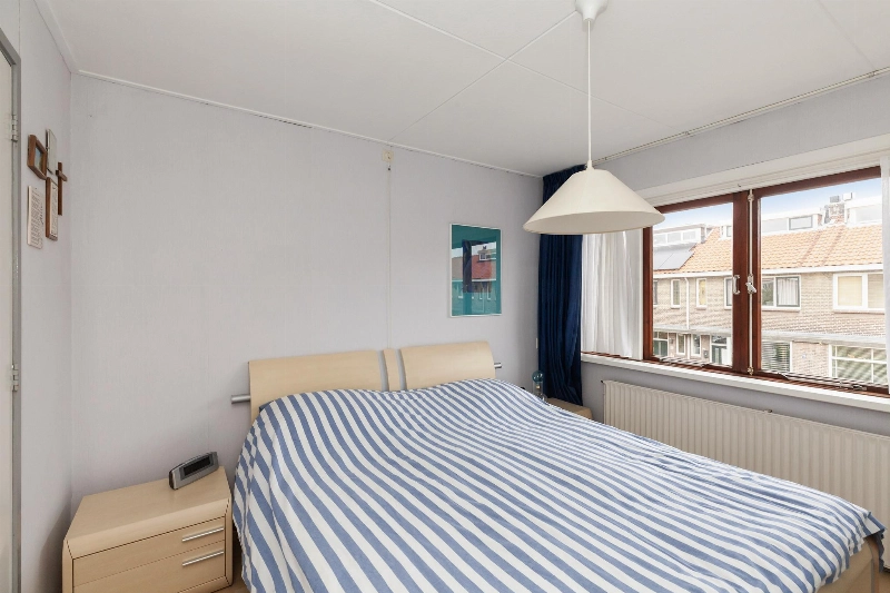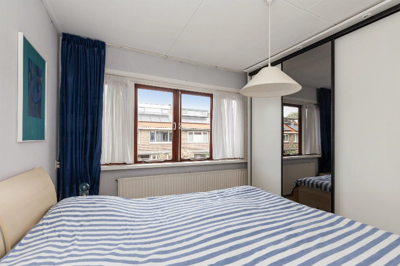 Slaapkamer I is gelegen aan de voorzijde en is voorzien van een laminaatvloer, een vaste kast en een kast met schuifdeuren.