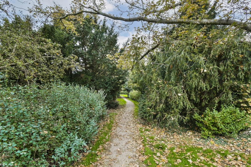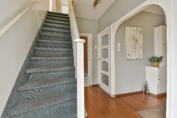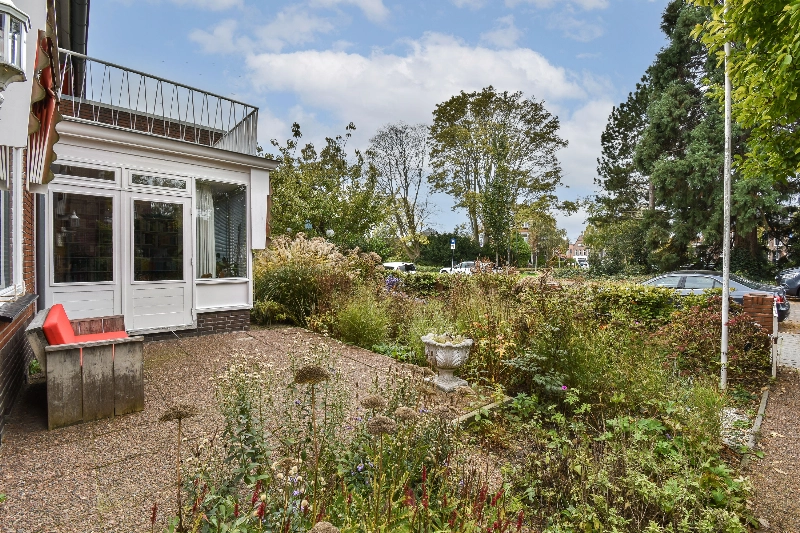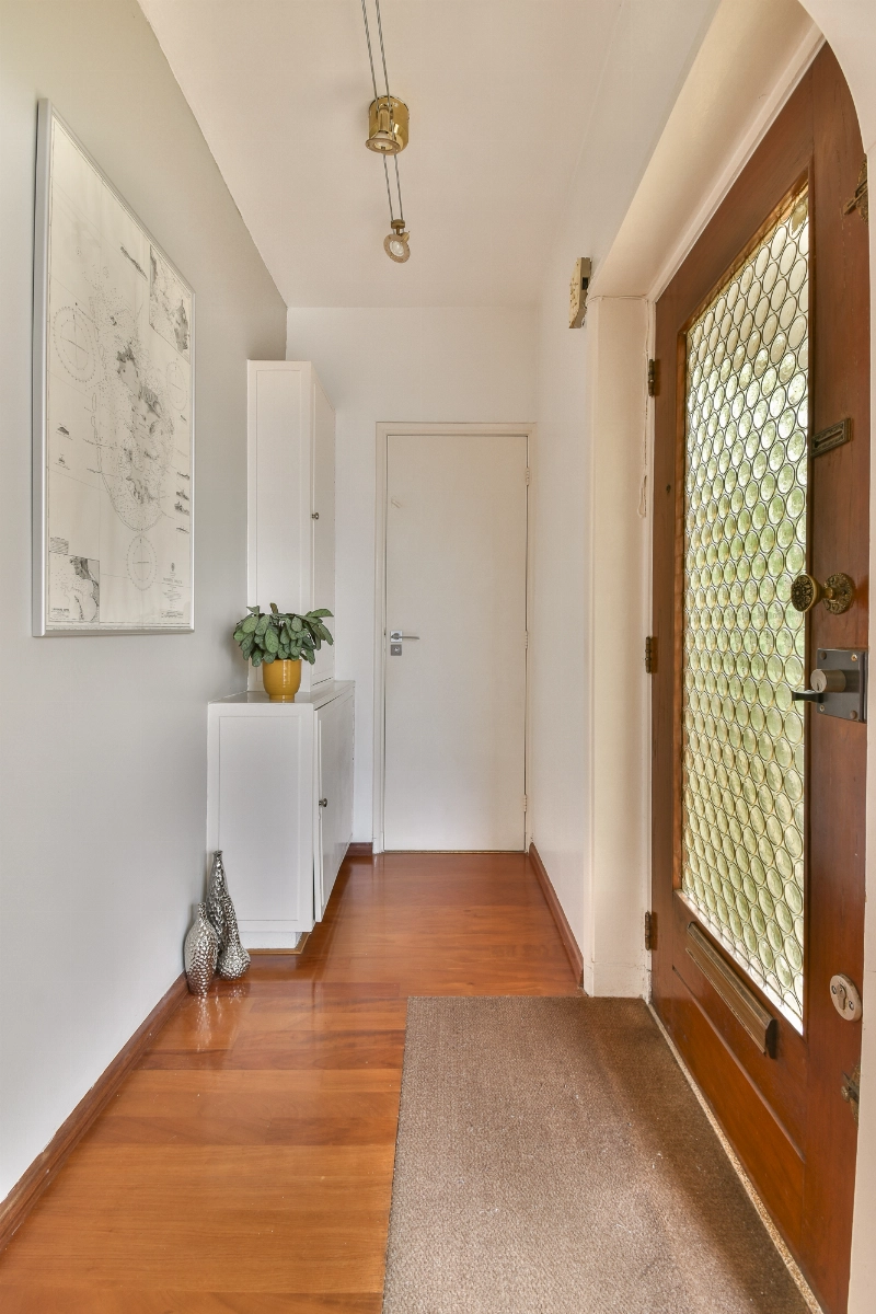 Via de prachtige groene voortuin loopt u zo naar de zijentree van de woning. U komt binnen in een ruime hal met veel lichtinval door de glazen pui.