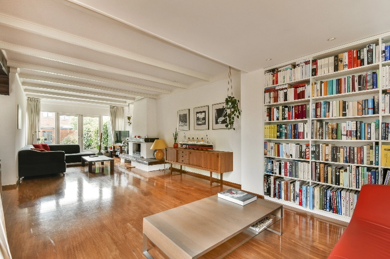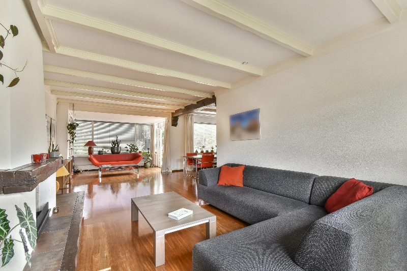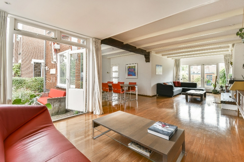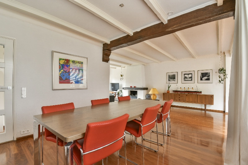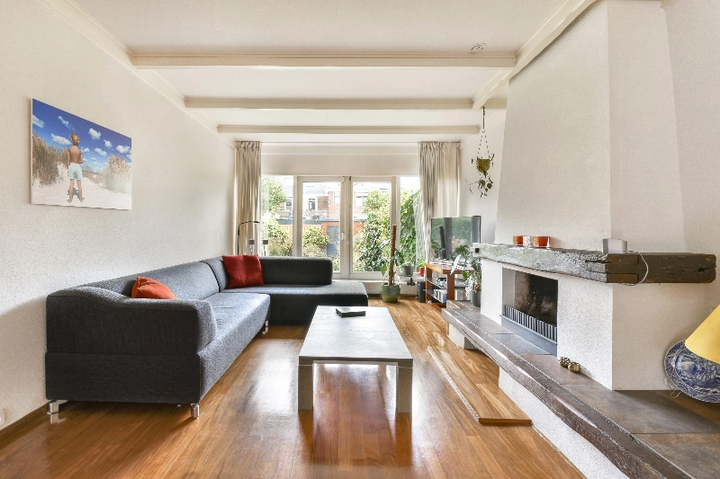 Deze woning beschikt over een echte living! Riant van opzet en het licht komt aan alle kanten via de grote ramen naar binnen. De open haard zorgt voor gezelligheid en warmte. Aan de achterzijde zijn twee openslaande deuren naar de tuin. Op de vloer ligt een mooie parketvloer welke doorloopt naar de hal en de balken aan het plafond zorgen voor extra sfeer.