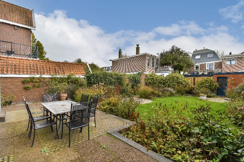 De woonkeuken ligt aan de achterzijde van de woning waardoor u tijdens het koken uitkijkt op de mooie groene tuin. De keuken heeft een houtlookinrichting met een natuurstenen aanrechtblad en sfeervolle metrotegeltjes en beschikt over een inductiekookplaat met RVS afzuigkap, een vaatwasser, een koelkast, een vriezer, een oven en een magnetron. Een diepe kelderkast is ideaal als provisiekast of wijnkelder. Via een deur loopt u zo de tuin in waarbij u een heerlijk ontbijtje kunt nemen op het terras aan de woning. De tuin is aangelegd met vaste planten welke het gehele jaar door voor een wisselende bloei zorgen. Er is nog een terras midden in de tuin waar u ook heerlijk kunt genieten en achterin de tuin is een zeer ruime stenen berging met grote dakkoepel van maar liefst 35 m². Ideaal als werkruimte, thuiswerkplek of extra ontspanningsruimte.. Door de ruime afmeting van de tuin kunt u de gehele dag van het zonnetje genieten.