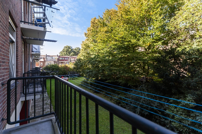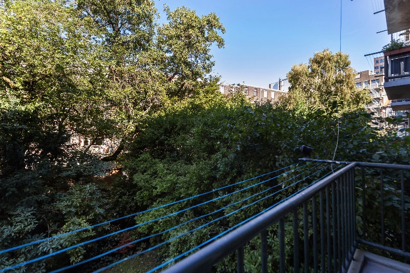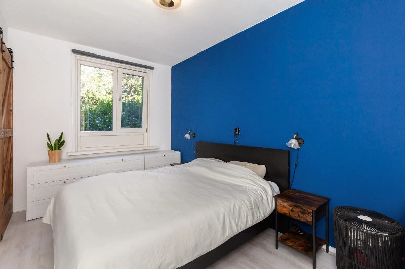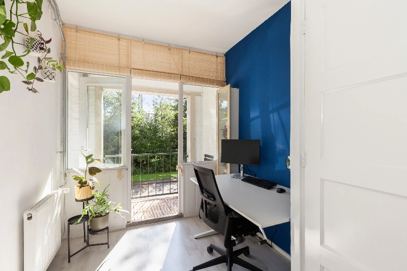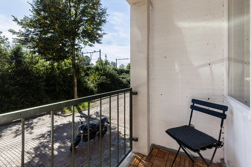 De tweede slaapkamer bevindt zich aan de voorzijde van het appartement en biedt toegang tot het zonnige op het zuiden gelegen balkon. De plek om van je ochtendkoffie of avondzon te genieten.