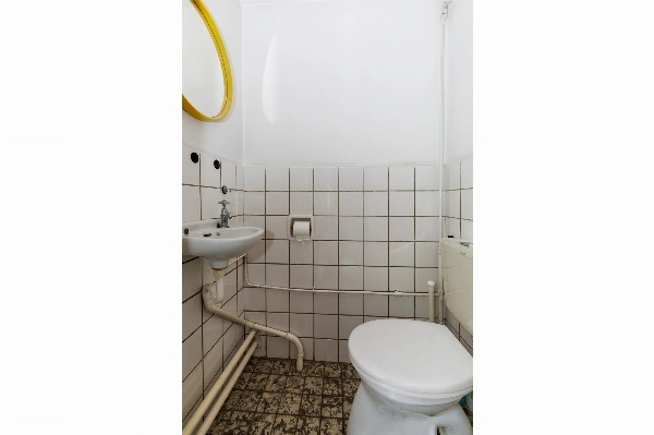 Via de grote voortuin met ruime oprit betreedt u de woning. U komt binnen in een grote en lichte hal met meterkast en toiletruimte met lichte betegeling, een duoblok en fonteintje.