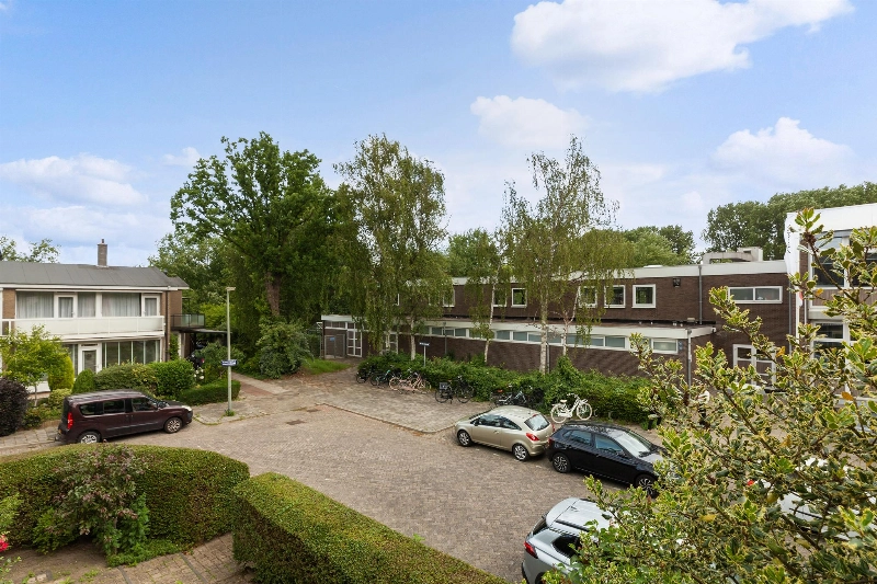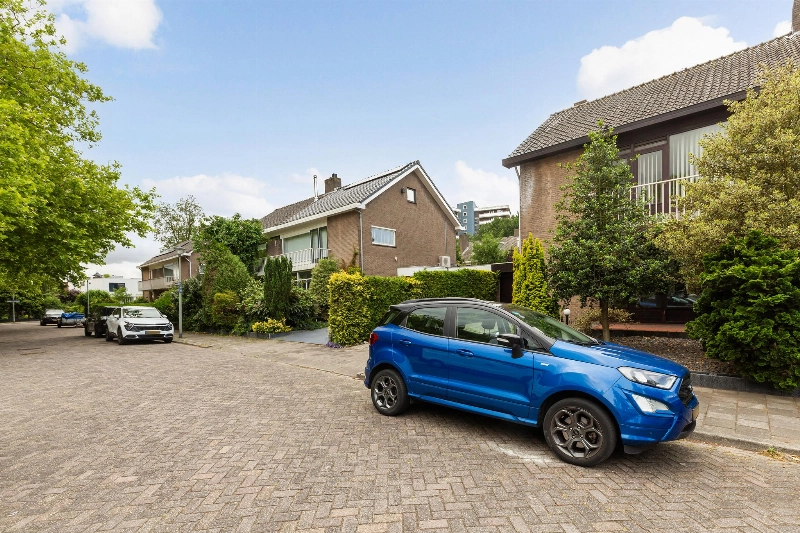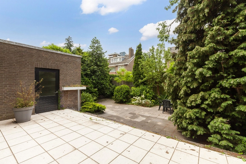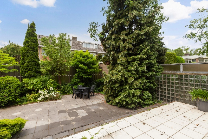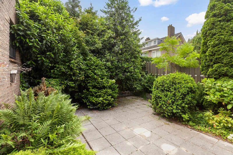 De woning beschikt over een royale voortuin met parkeergelegenheid voor twee auto's op eigen terrein. De achtertuin, gelegen op het zonnige zuidwesten, biedt volop privacy.