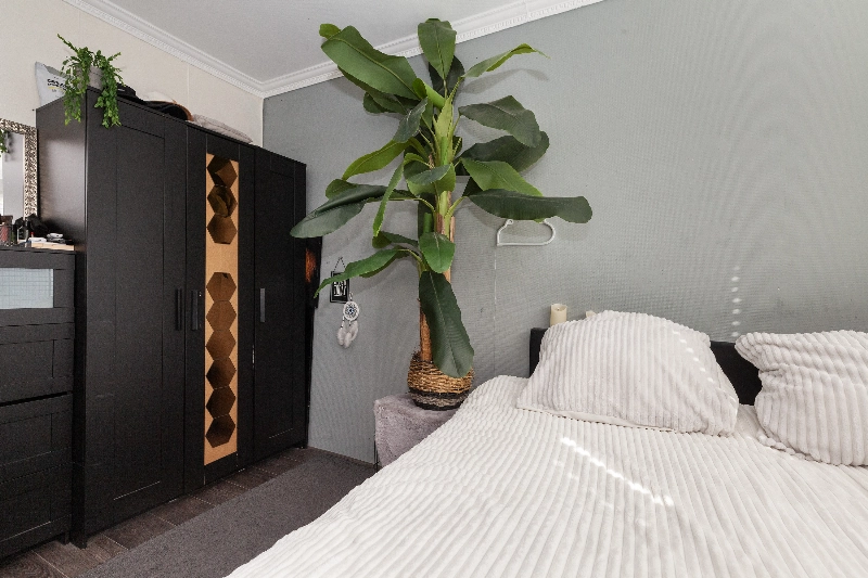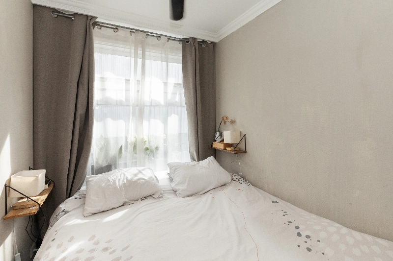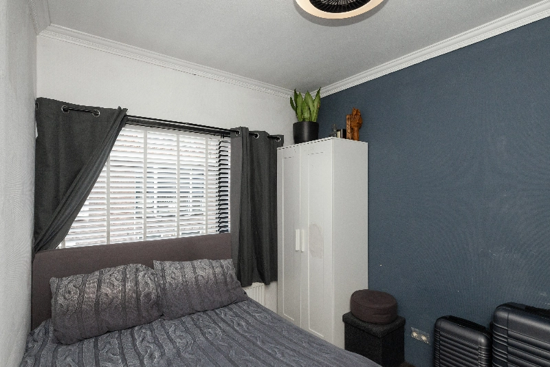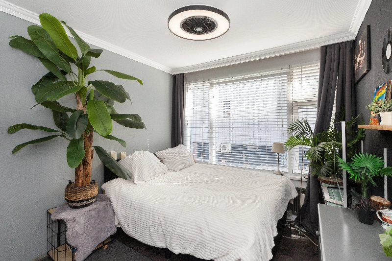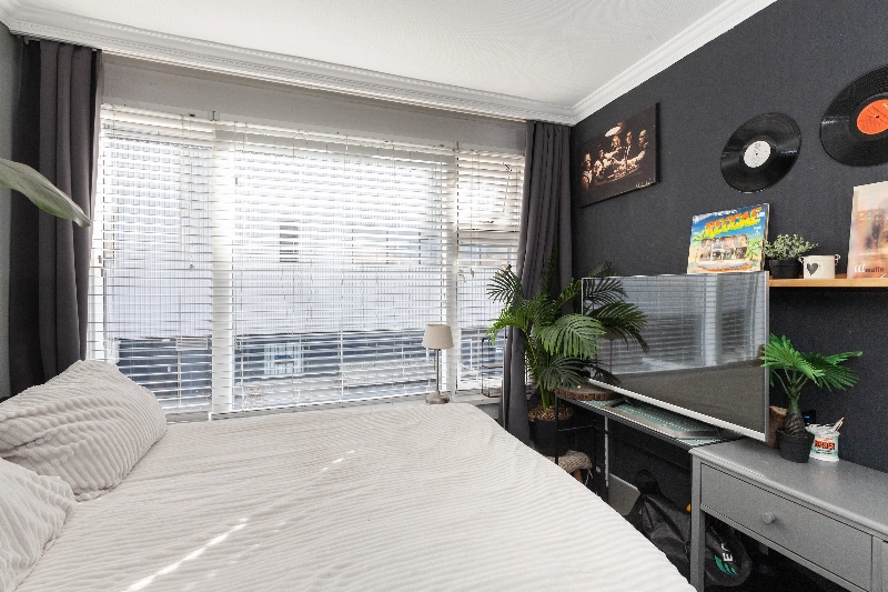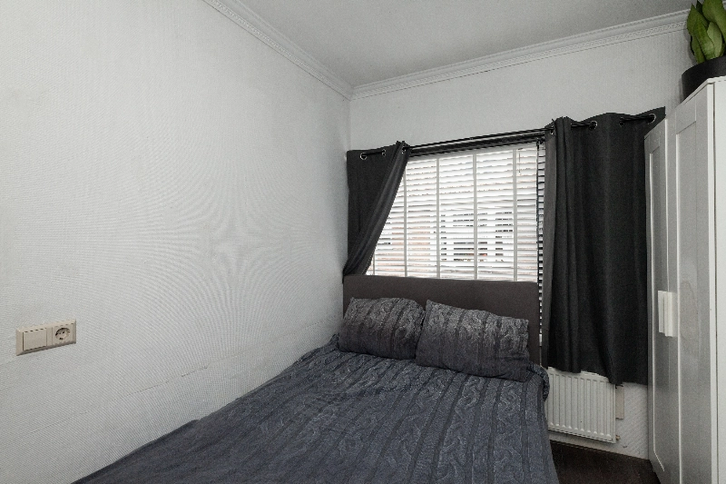 Slaapkamer II is eveneens gelegen aan de achterzijde. Beide slaapkamers zijn afgewerkt met glasvliesbehang op de wanden.