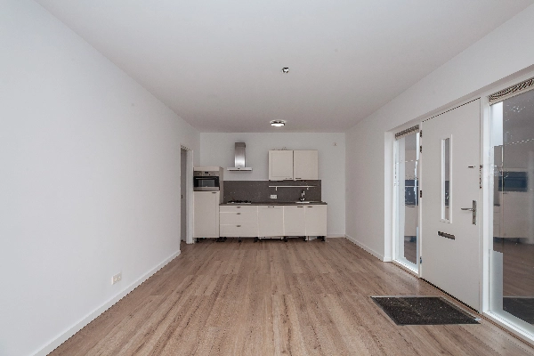 Entree via de voordeur waarbij je direct in de grote woonkamer staat.