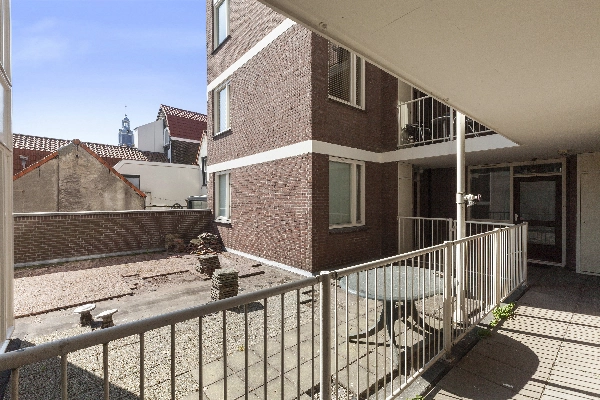 Direct aan de woonkamer grenst een inpandig balkon waar u gezellig buiten kunt zitten.