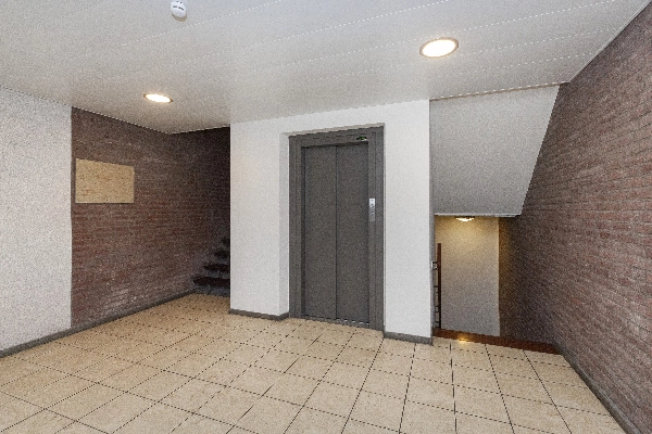 Afgesloten entree met brievenbussen. Centrale hal met lift en trap naar de verdiepingen.