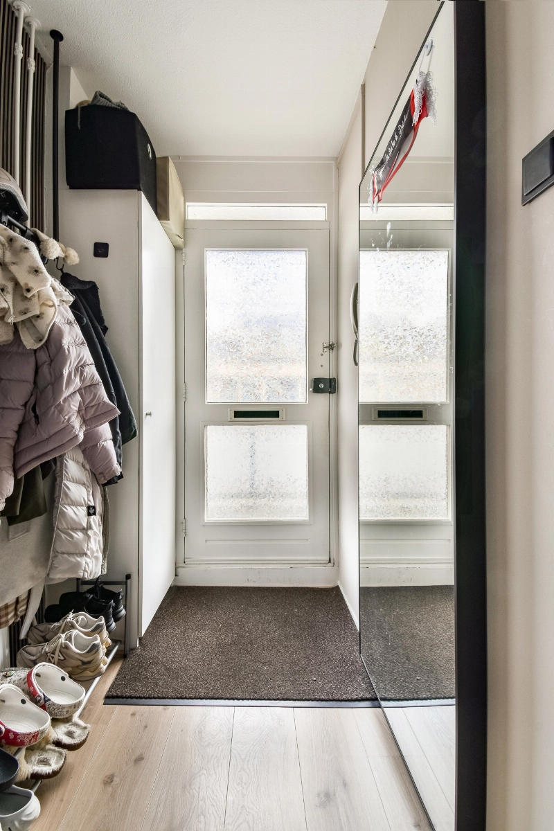 Afgesloten entree met brievenbussen en trapopgang naar de verdiepingen. Via de galerij op de 2e verdieping bereik je de woning. Entree, hal met meterkast.