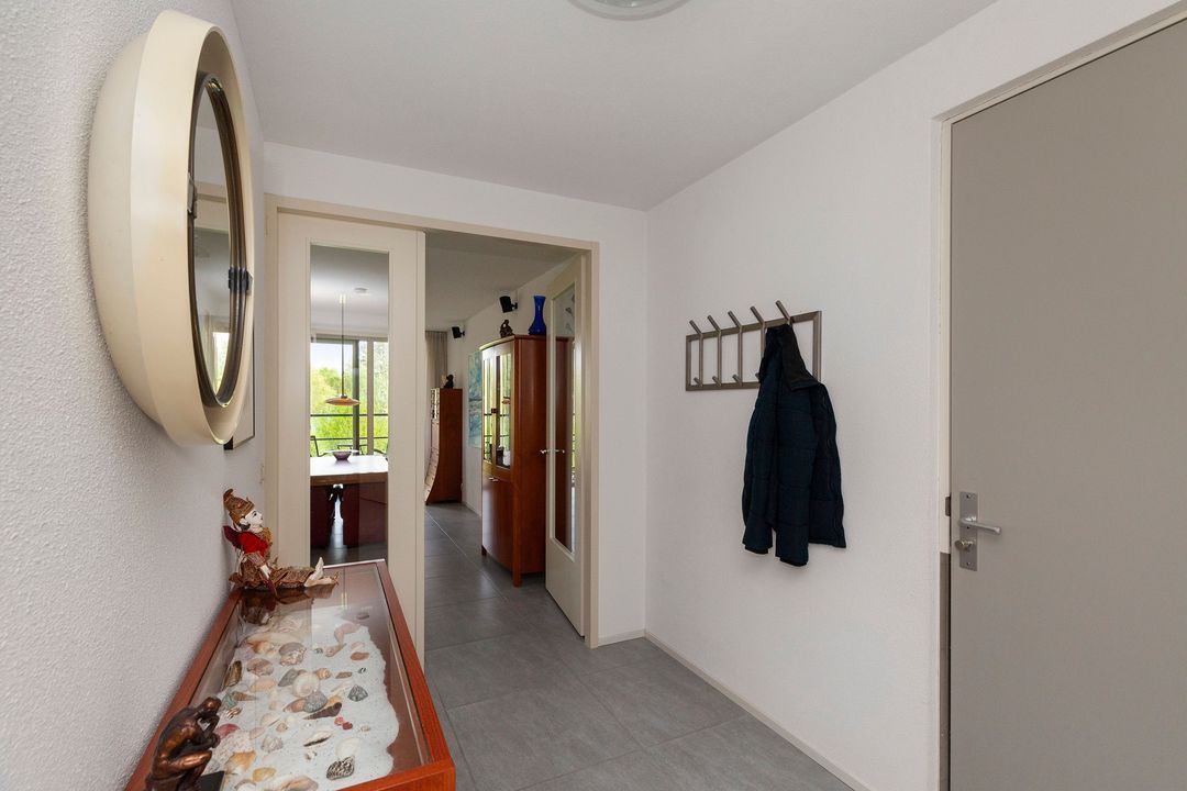 Bij binnenkomst valt direct de fijne lichtinval op. De grote raampartijen geven tevens een mooi uitzicht over het groen. In de ruime hal bevindt zich de videofooninstallatie, de meterkast en een volledig betegeld toilet met een zwevend toilet en een fonteintje.