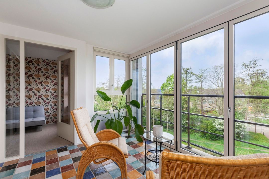 Vanuit de woonkamer is er middels een schuifpui toegang tot het overdekte balkon met vrij zicht over het groen en aan de andere kant van de kamer loopt u zo de zonnige serrekamer in. De grote harmonicadeuren kunt u helemaal openschuiven, dit is écht een heerlijke plek om van het zonnetje en het vrije uitzicht te genieten. Deze serre is voorzien van sfeervolle vloerbetegeling.