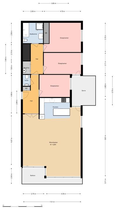 De Meetinstructie is gebaseerd op de NEN2580. De Meetinstructie is bedoeld om een meer eenduidige manier van meten toe te passen voor het geven van een indicatie van de gebruiksoppervlakte. De Meetinstructie sluit verschillen in meetuitkomsten niet volledig uit, door bijvoorbeeld interpretatieverschillen, afrondingen of beperkingen bij het uitvoeren van de meting. Indien de exacte maten voor een koper van cruciaal belang zijn, adviseren wij deze zelf na te meten. De (kandidaat)koper(s) zullen, indien gewenst, daartoe in de gelegenheid gesteld worden op een passend moment teneinde teleurstellingen en schade te voorkomen.