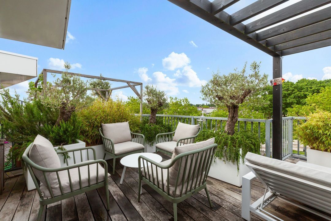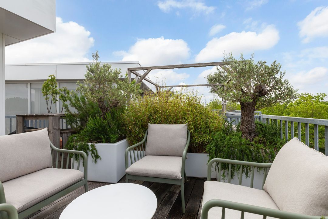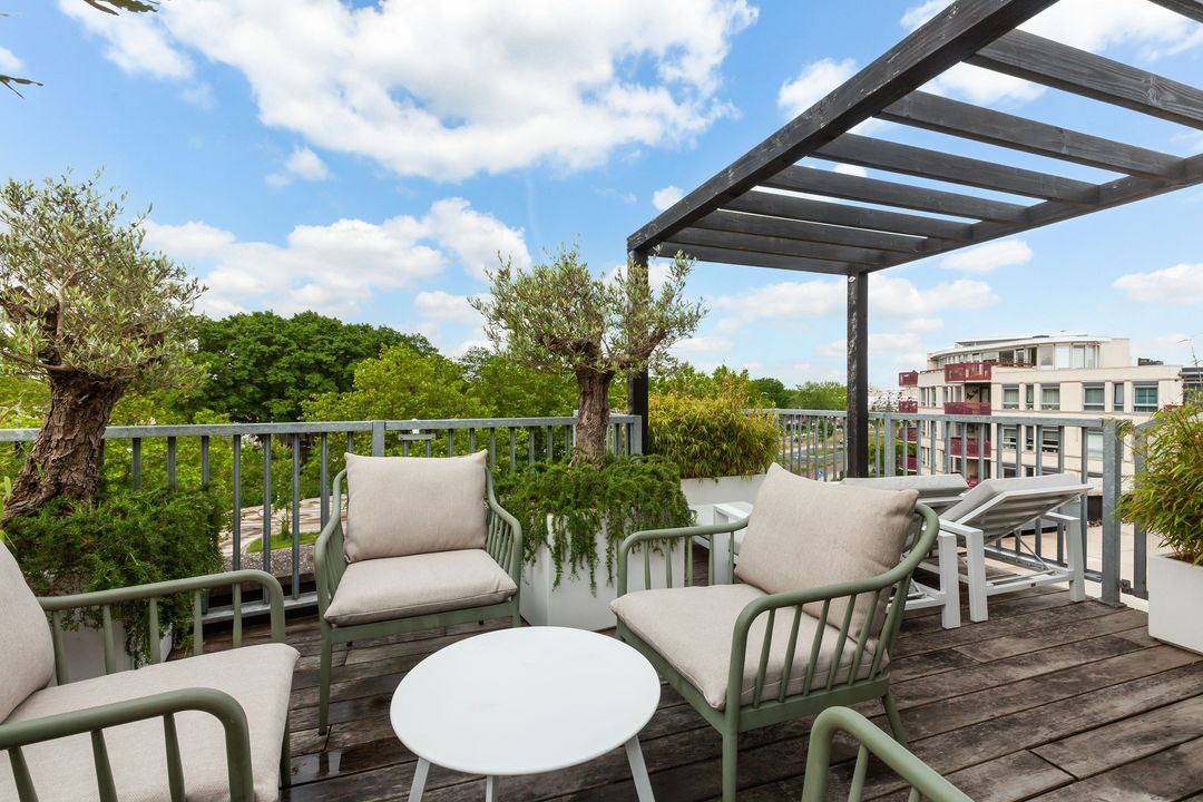 De 3e verdieping heeft een grote 4e slaapkamer met de opstelling van de c.v. ketel en de aansluitingen voor de wasmachine en droger. Via een deur is het zonnige dakterras te bereiken. Hier kan je in de zomer de hele dag van de zon genieten. Het terras is afgewerkt met bankirai terrasvlonders en mooie plantenbakken met een sproei installatie en verlichting. Deze plek is uitermate geschikt om in alle privacy van het buitenleven te genieten.