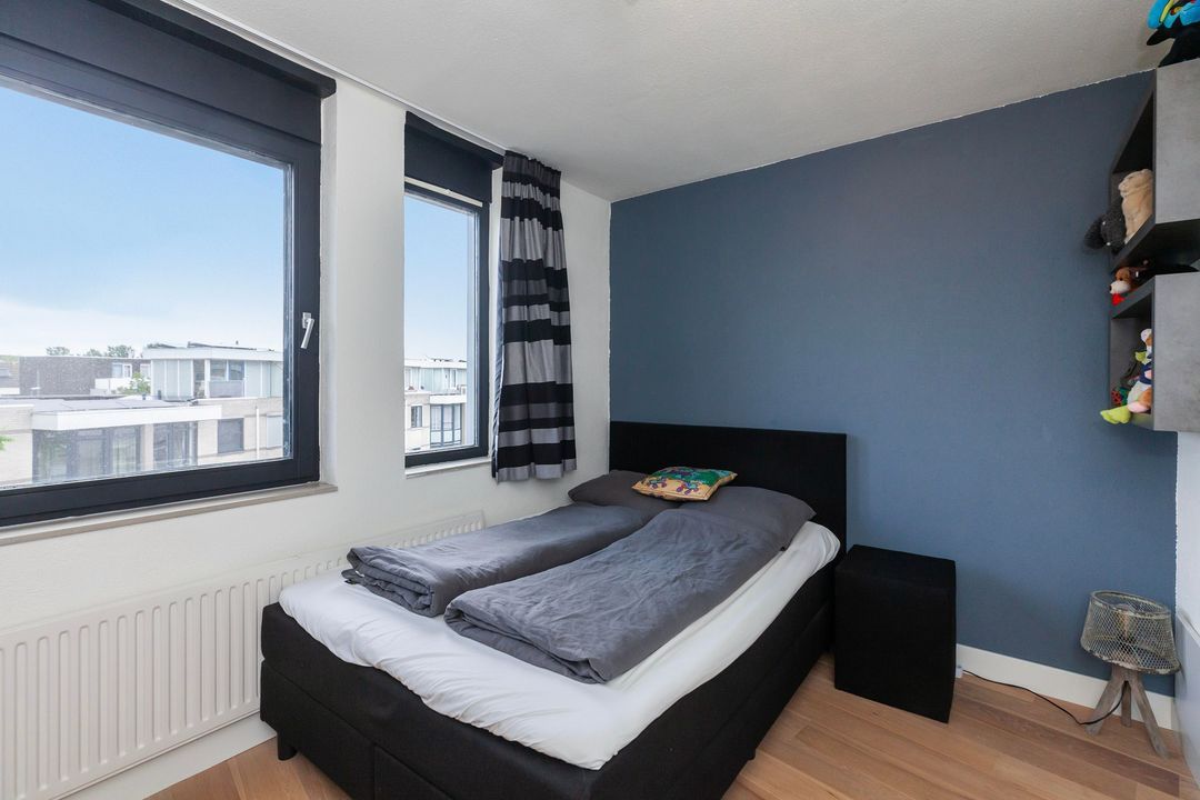 4e slaapkamer met de aansluitingen voor de wasmachine, droger en de opstelling van de c.v. ketel (Atag 2012). Een deur geeft toegang tot het fijne dakterras met bankirai vlonderdelen en mooie plantenbakken met een sproeiinstallatie en verlichting. Hier kunt u de gehele dag van de zon genieten.