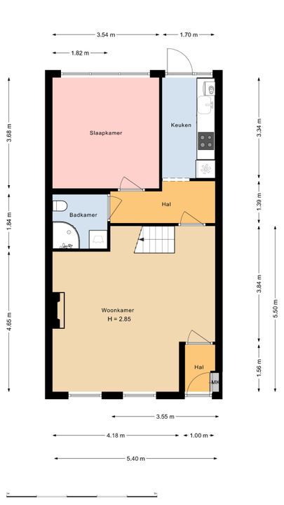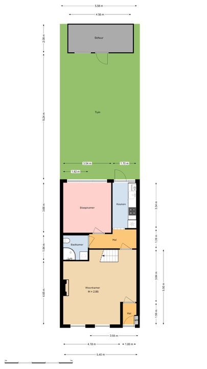 De Meetinstructie is gebaseerd op de NEN2580. De Meetinstructie is bedoeld om een meer eenduidige manier van meten toe te passen voor het geven van een indicatie van de gebruiksoppervlakte. De Meetinstructie sluit verschillen in meetuitkomsten niet volledig uit, door bijvoorbeeld interpretatieverschillen, afrondingen of beperkingen bij het uitvoeren van de meting. Indien de exacte maten voor een koper van cruciaal belang zijn, adviseren wij deze zelf na te meten. De (kandidaat)koper(s) zullen, indien gewenst, daartoe in de gelegenheid gesteld worden op een passend moment teneinde teleurstellingen en schade te voorkomen.