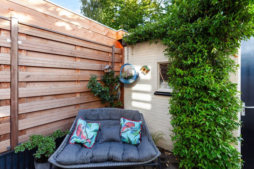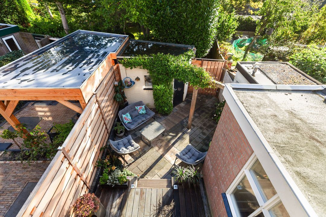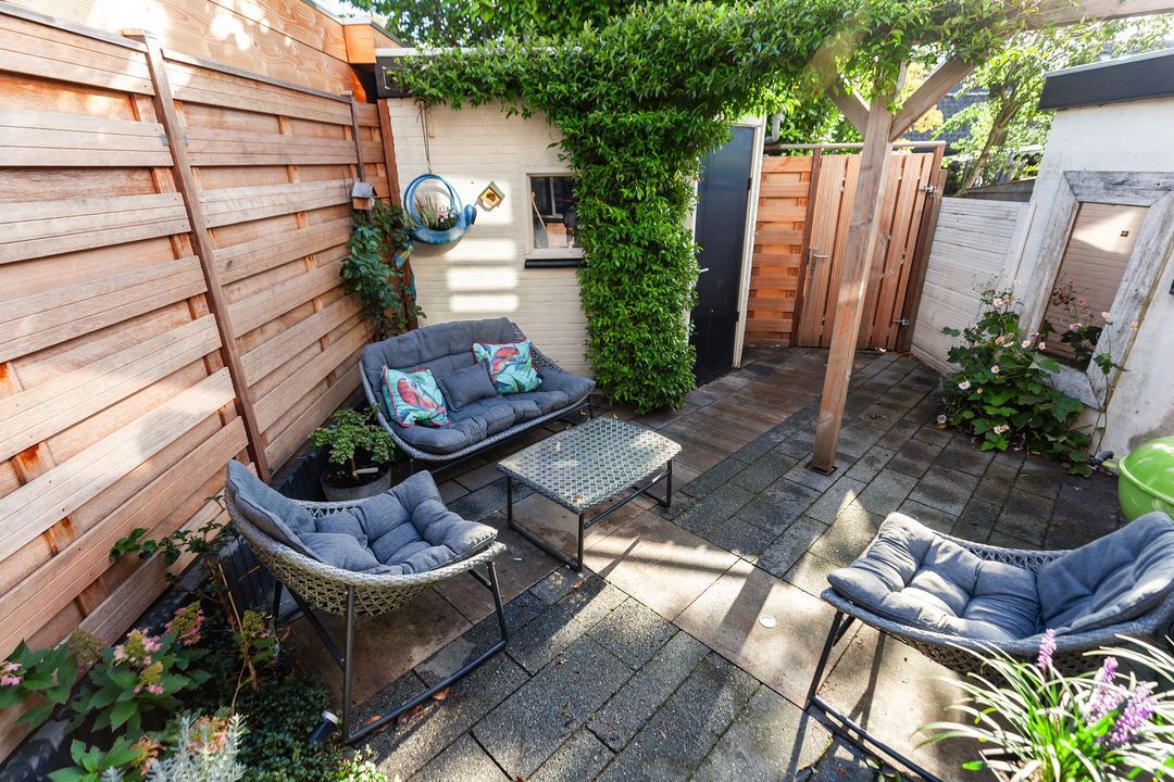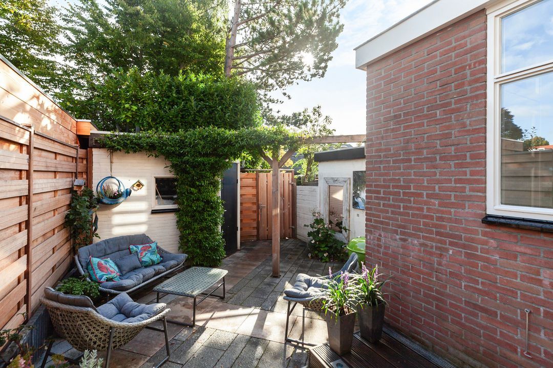 Vanuit de keuken stapt u zo de gezellige achtertuin in. Hier geniet u van een verhoogde vlonder aan de woning, fraaie bestrating, een houten pergola voor extra sfeer en een stenen berging. In 2025 is er een nieuwe schutting geplaatst.