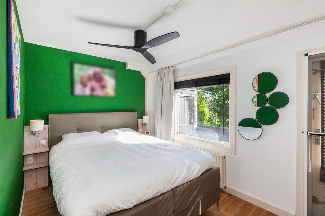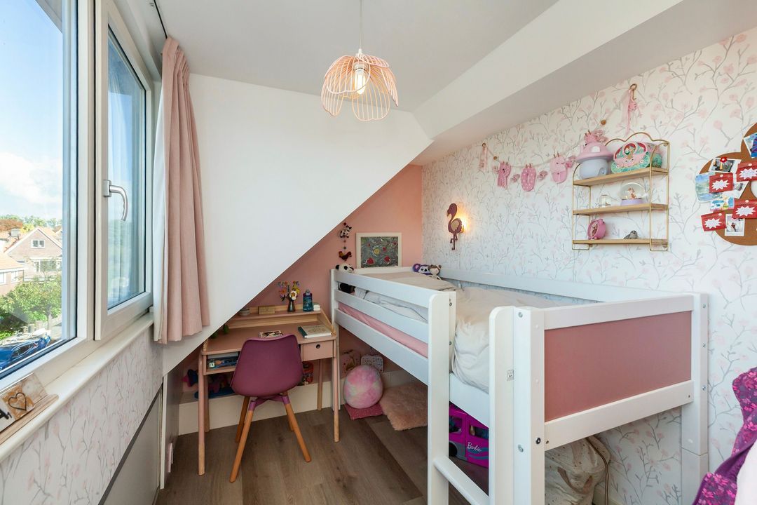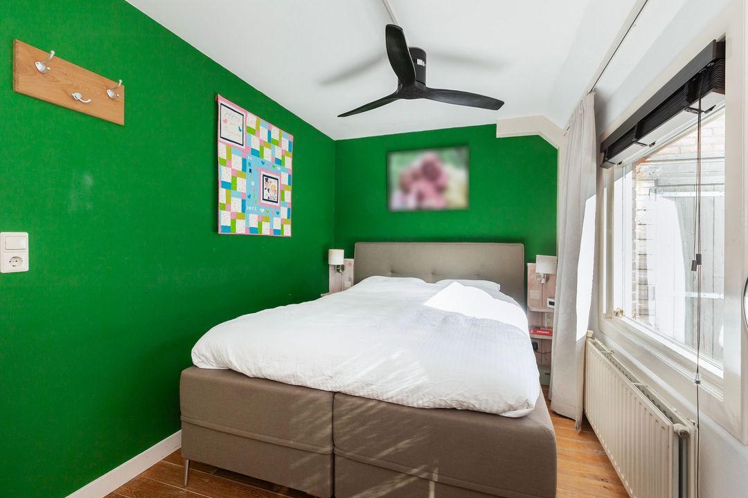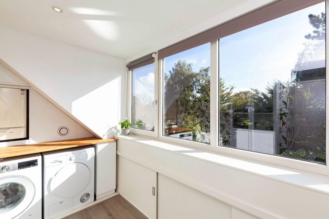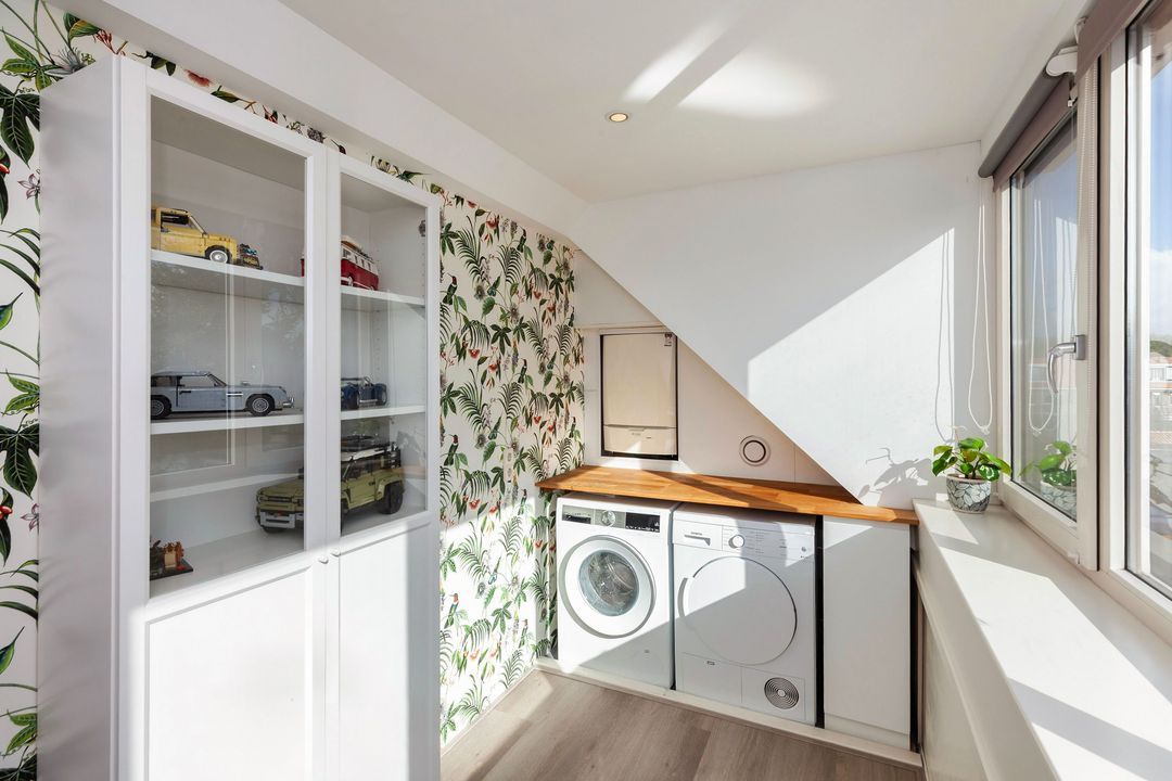 Op zolder zorgen twee grote dakkapellen voor een prachtige verdieping met een slaapkamer en een slaapkamer/wasruimte.