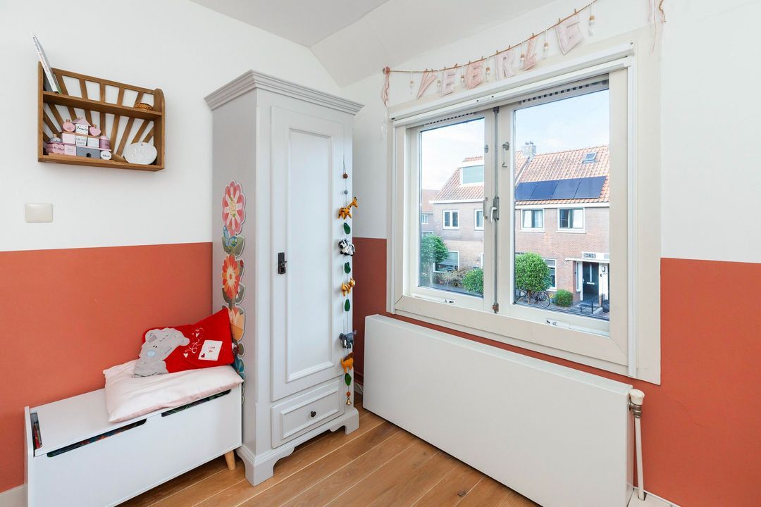 Slaapkamer II, gelegen aan de voorzijde van de woning. Deze kamer is opgedeeld in twee kamers. Ideaal als kinderkamers, kledingkamer of werkruimte.