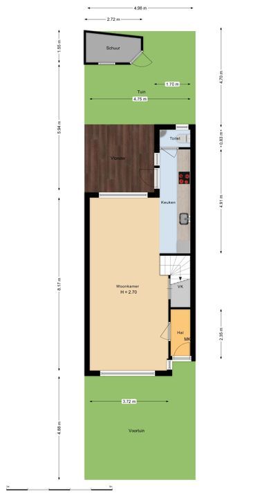 De Meetinstructie is gebaseerd op de NEN2580. De Meetinstructie is bedoeld om een meer eenduidige manier van meten toe te passen voor het geven van een indicatie van de gebruiksoppervlakte. De Meetinstructie sluit verschillen in meetuitkomsten niet volledig uit, door bijvoorbeeld interpretatieverschillen, afrondingen of beperkingen bij het uitvoeren van de meting. Indien de exacte maten voor een koper van cruciaal belang zijn, adviseren wij deze zelf na te meten. De (kandidaat)koper(s) zullen, indien gewenst, daartoe in de gelegenheid gesteld worden op een passend moment teneinde teleurstellingen en schade te voorkomen.