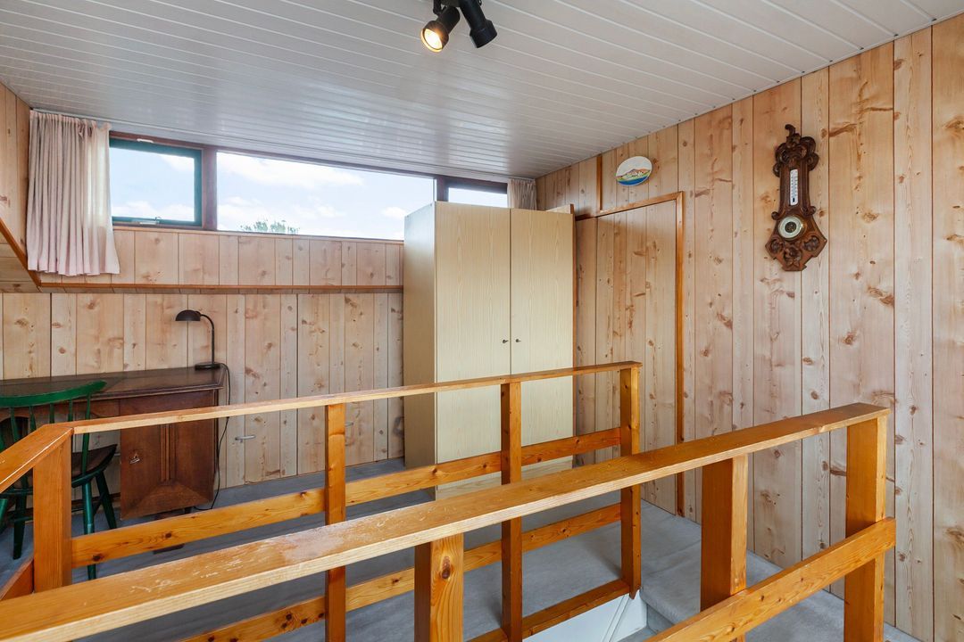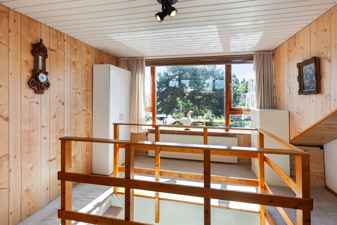 Riante zolderkamer, gerealiseerd dankzij een dakkapel over de volledige nokbreedte. De kamer biedt volop daglicht en extra bergruimte achter de grote schotten - ideaal als derde slaapkamer, werkruimte of hobbykamer.
