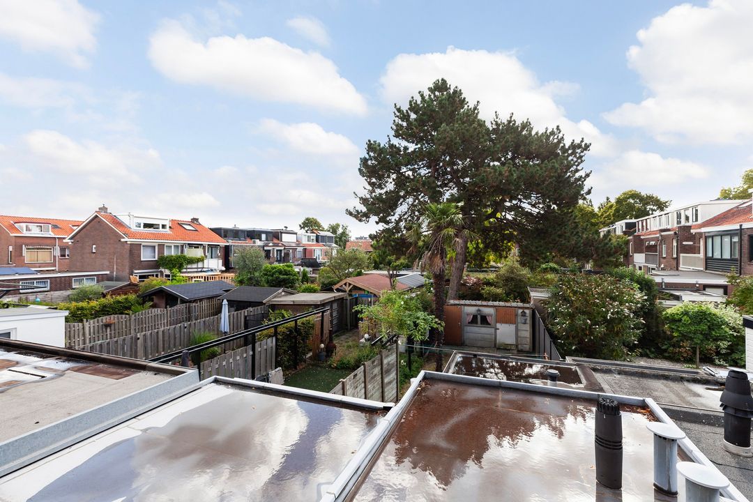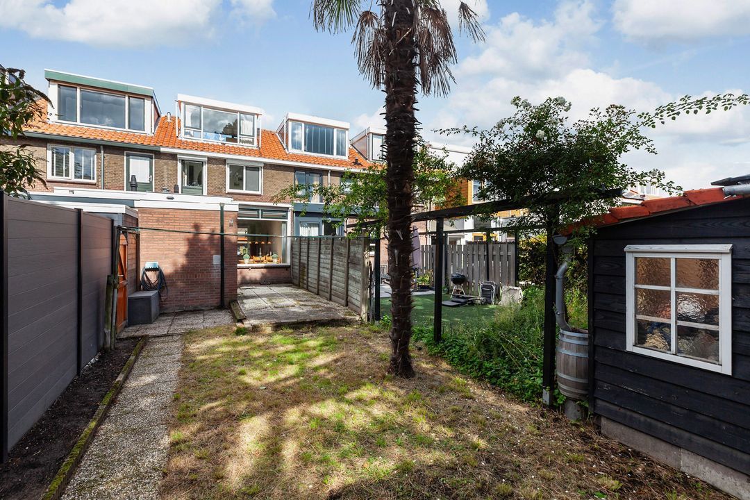 De zonnige op het zuiden gelegen achtertuin is aangelegd met een terras en gras. Achterin bevinden zich twee bergingen - ideaal voor fietsen, gereedschap of extra opslag. Er is een achterom met een steeg welke uitkomt op de Anthony Knottenbeltsingel.