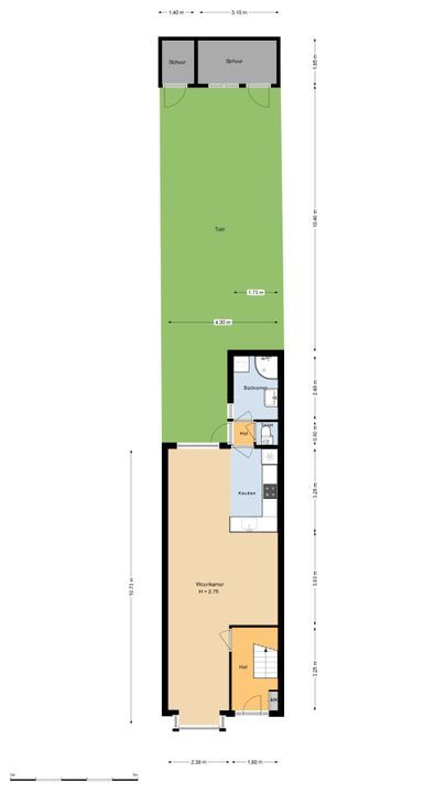 Grenzend aan de keuken vindt u een tussenhal van waaruit u toegang heeft tot de zonnige, op het zuiden gelegen achtertuin tuin van maar liefst 14 meter diep - ideaal om heerlijk te ontspannen of gezellig te tuinieren. Achterin deze diepe tuin vindt u twee praktische bergingen.